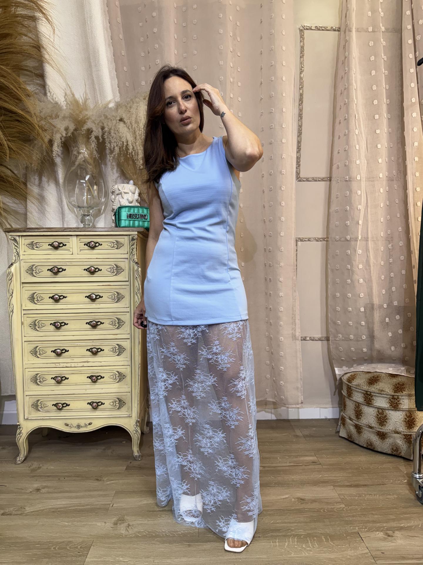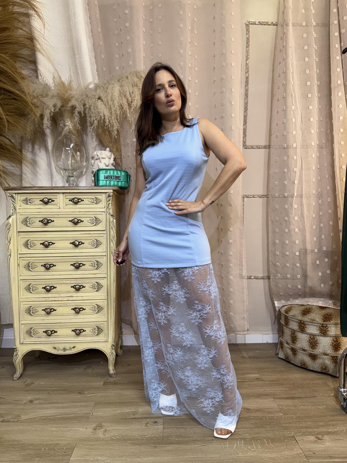 VESTIDO LARGO ENCAJE AZUL
