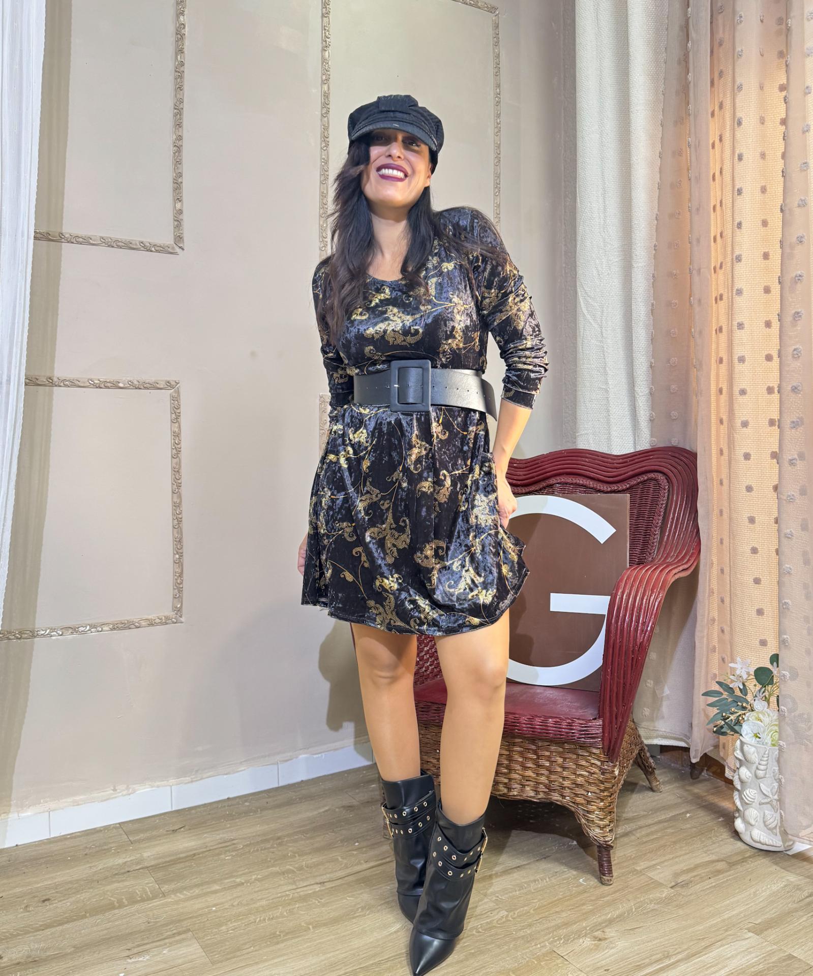 VESTIDO TERCIOPELO NEGRO/DORADOS