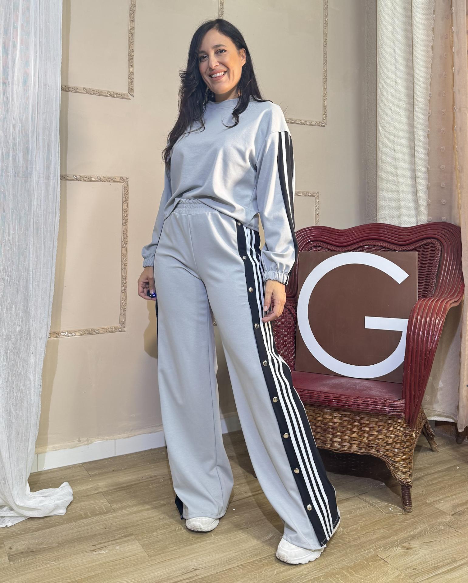CHANDAL GRIS PANTALON RAYAS CON BOTONES