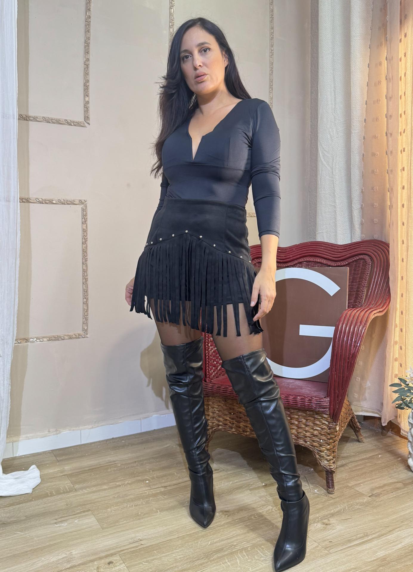 FALDA PANTALON FLECOS NEGRA