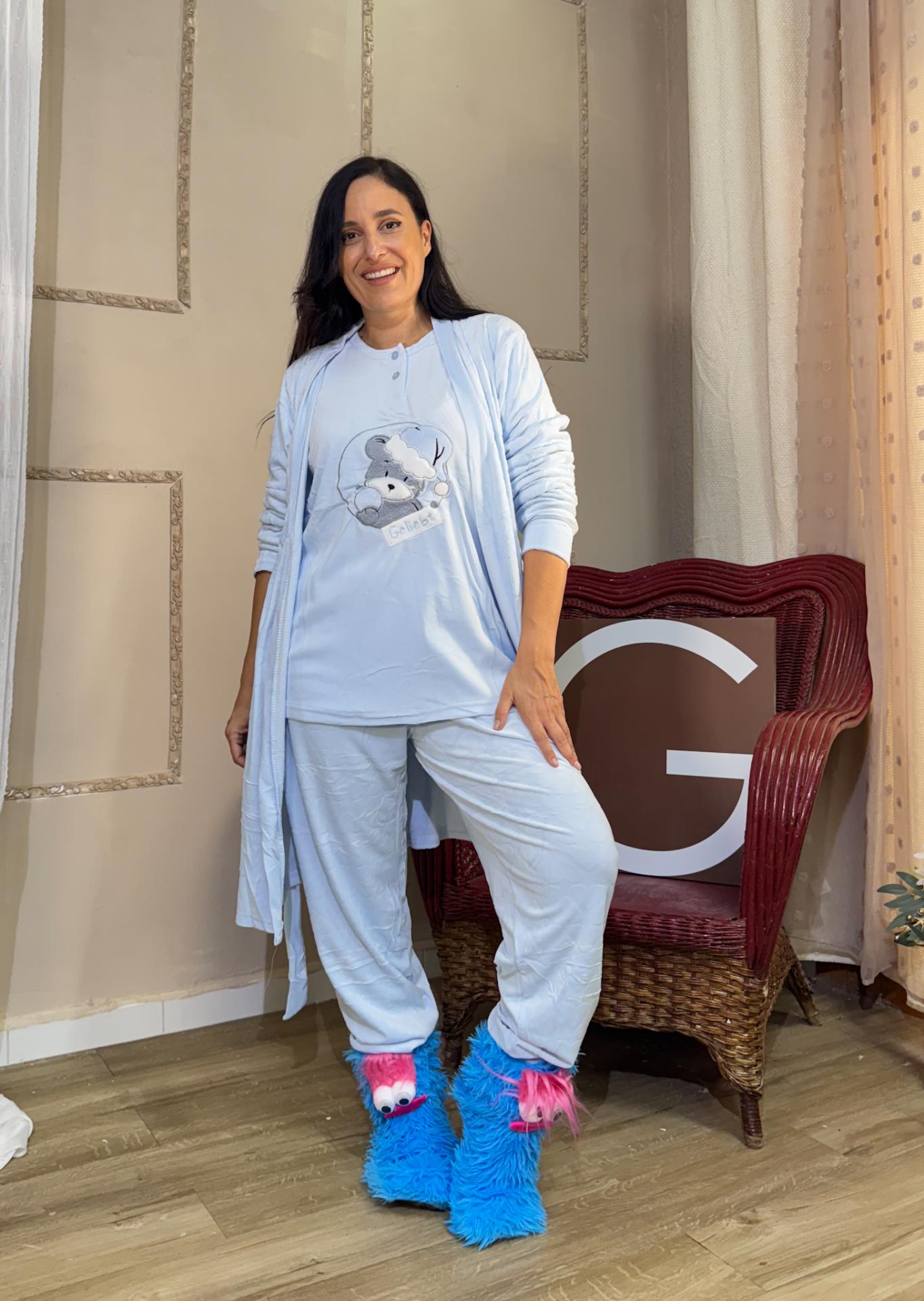 PIJAMA SUAVE OSO 3 PIEZAS AZUL