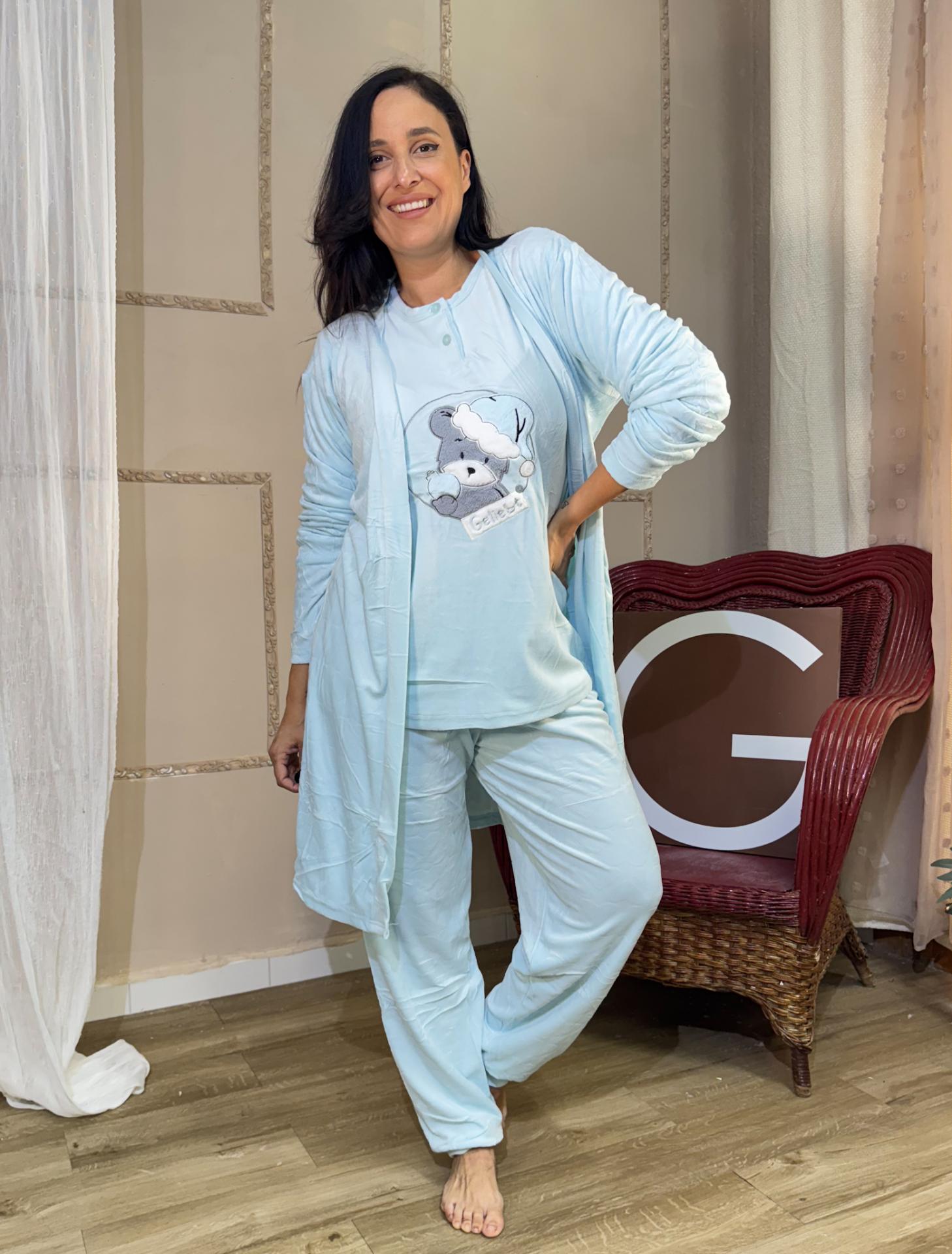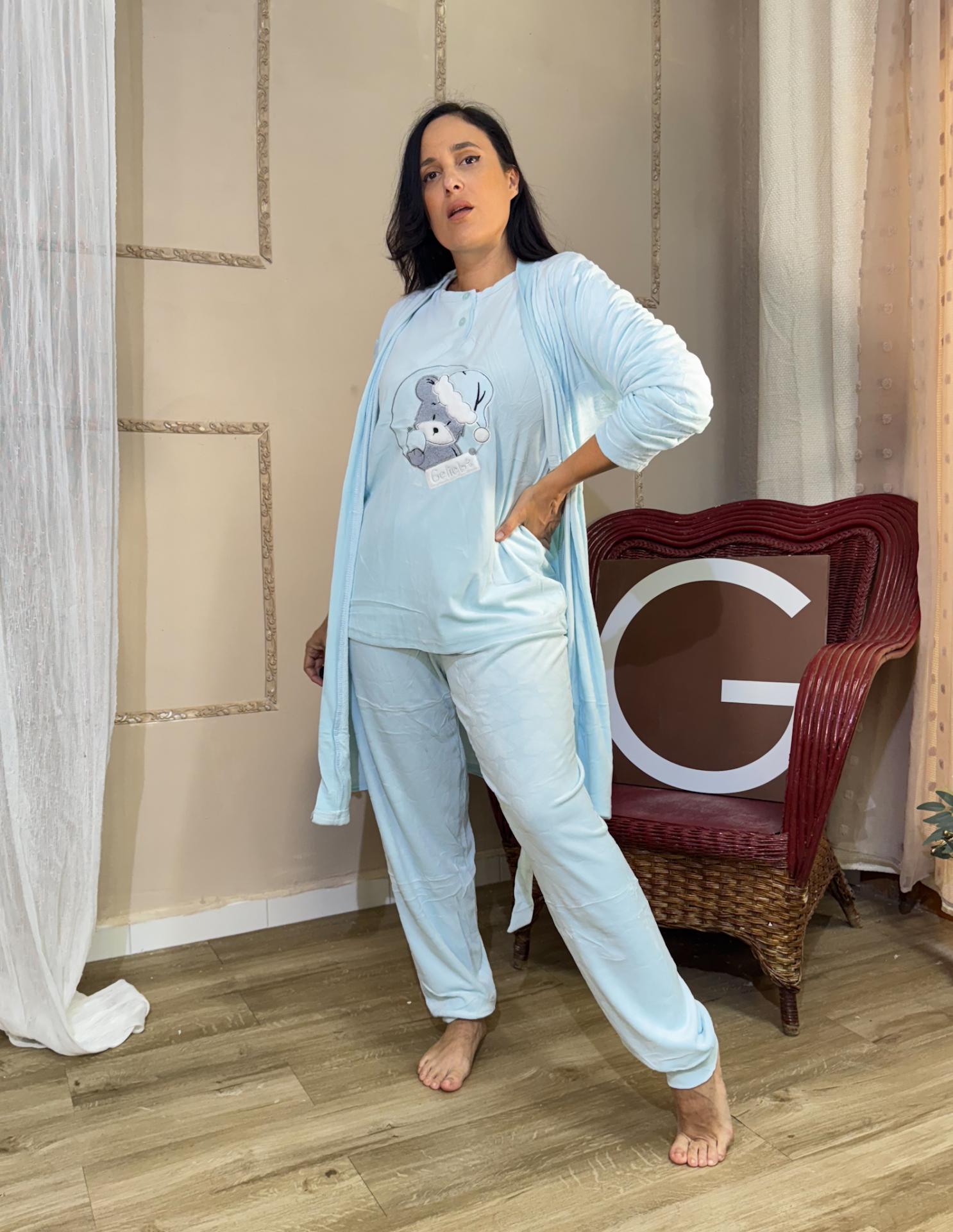 PIJAMA SUAVE OSO 3 PIEZAS TURQUESA