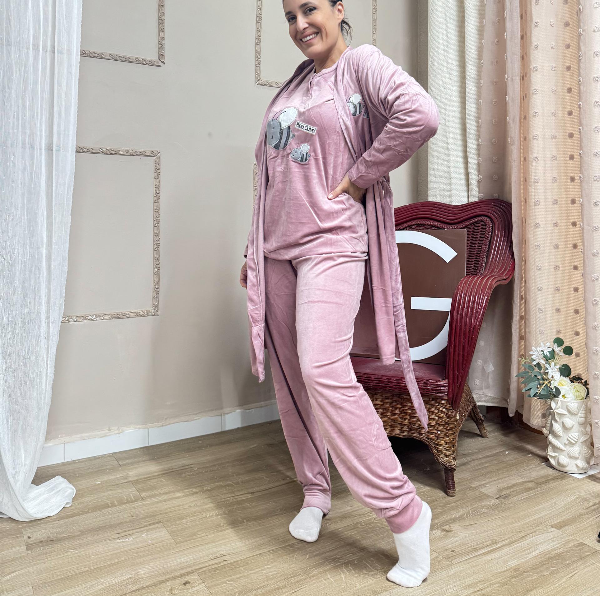 PIJAMA SUAVE ABEJA 3 PIEZAS ROSA