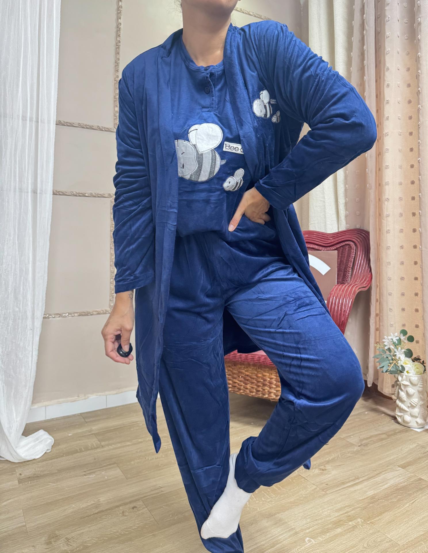 PIJAMA SUAVE ABEJA 3 PIEZAS AZUL