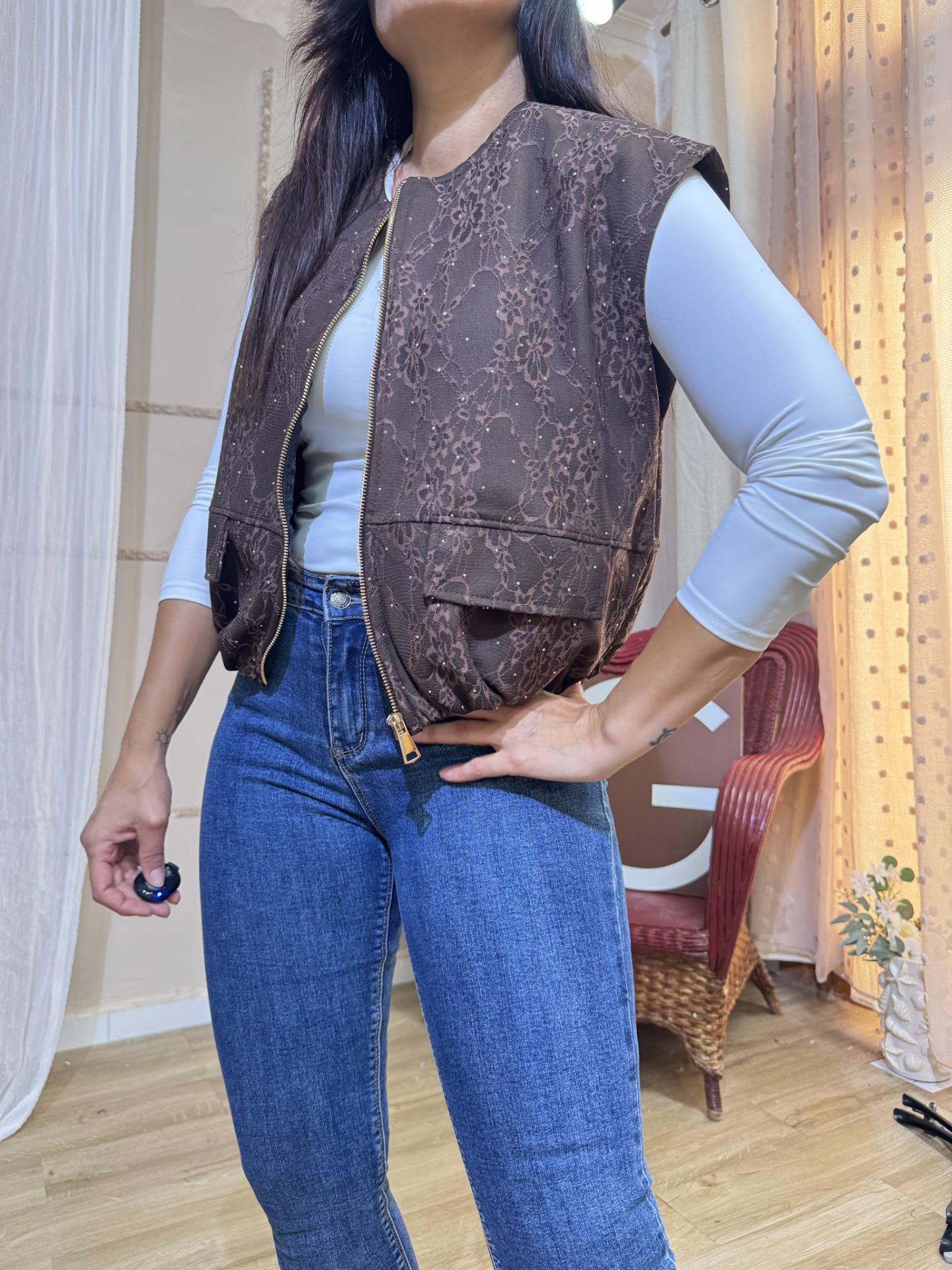 CHALECO BRILLANTE MARRON CHOCOLATE