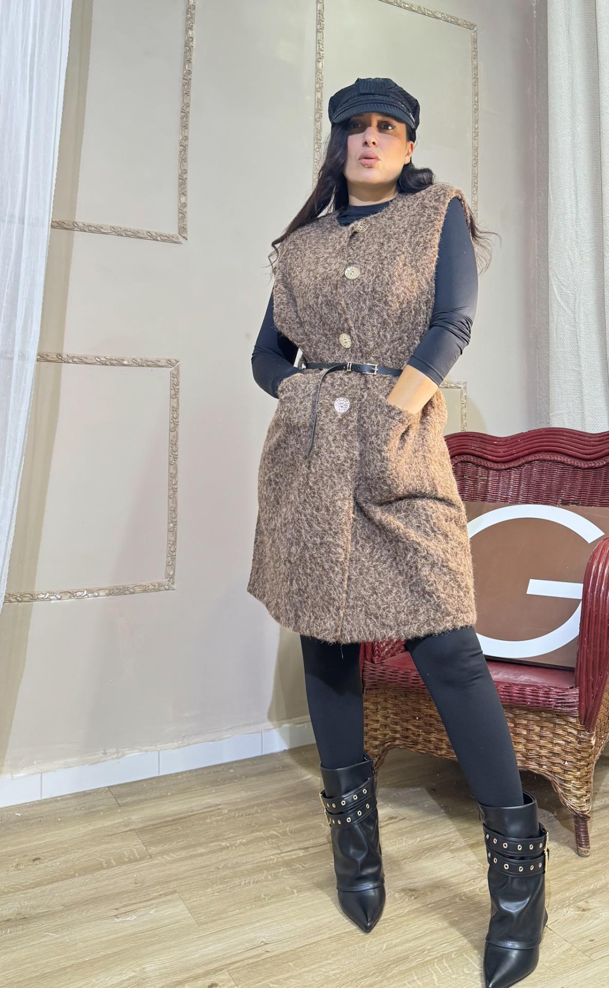 CHALECO MARRONTRES CUARTOS BOTONES DORADOS
