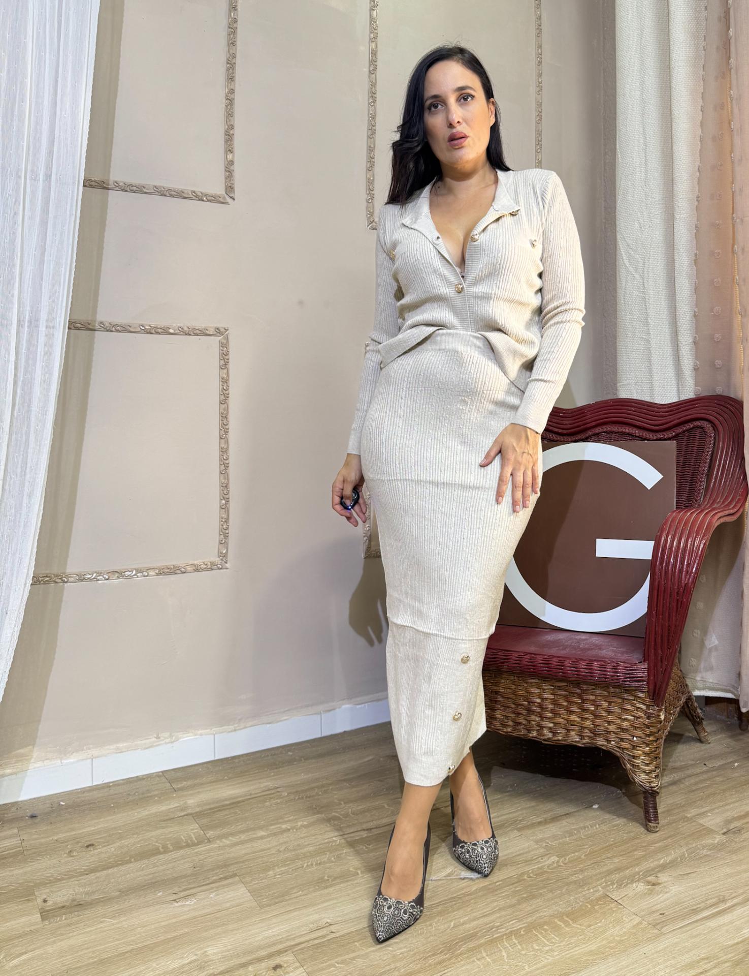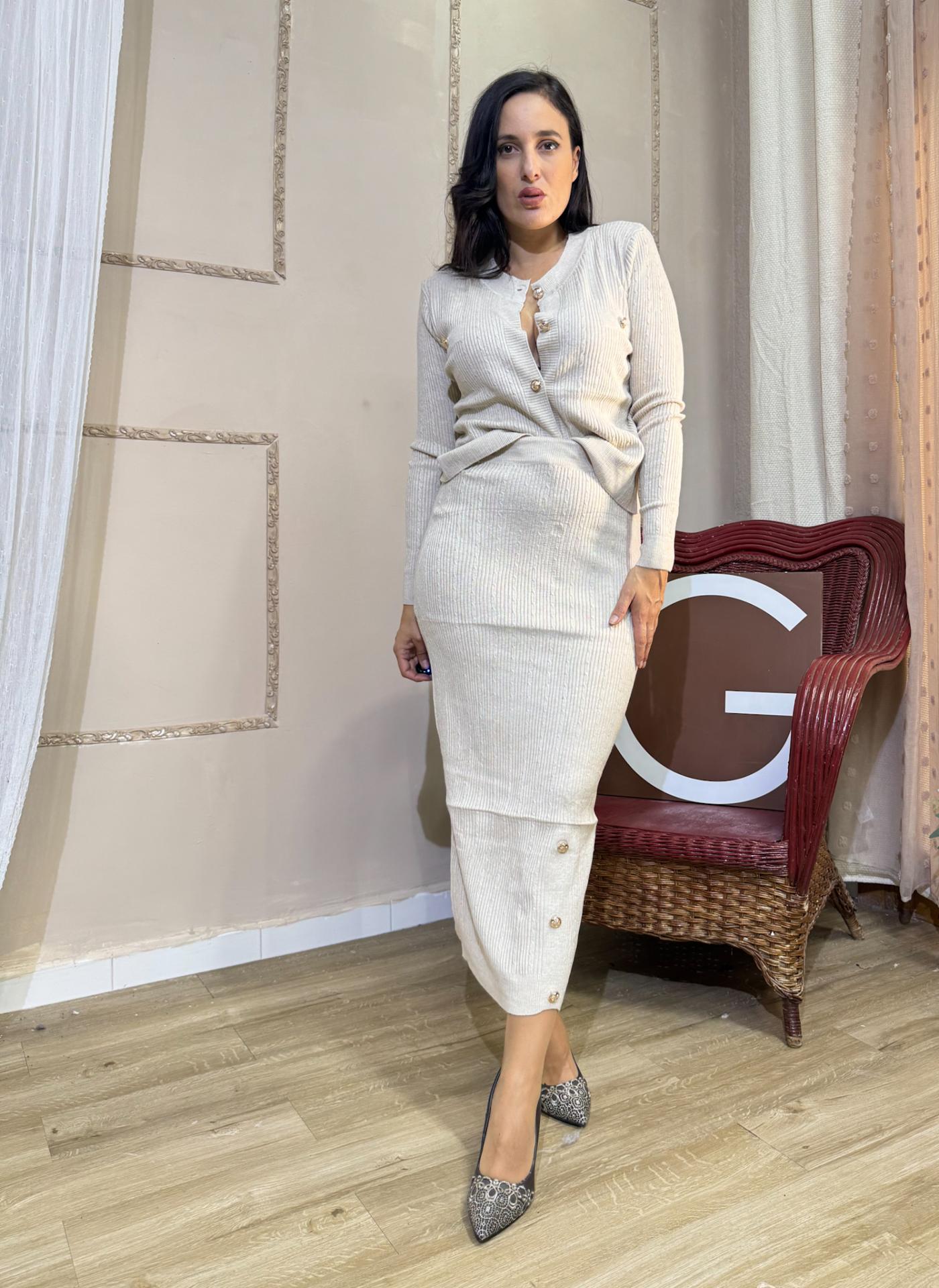 CONJUNTO BEIG DE PUNTO FALDA Y REBECA