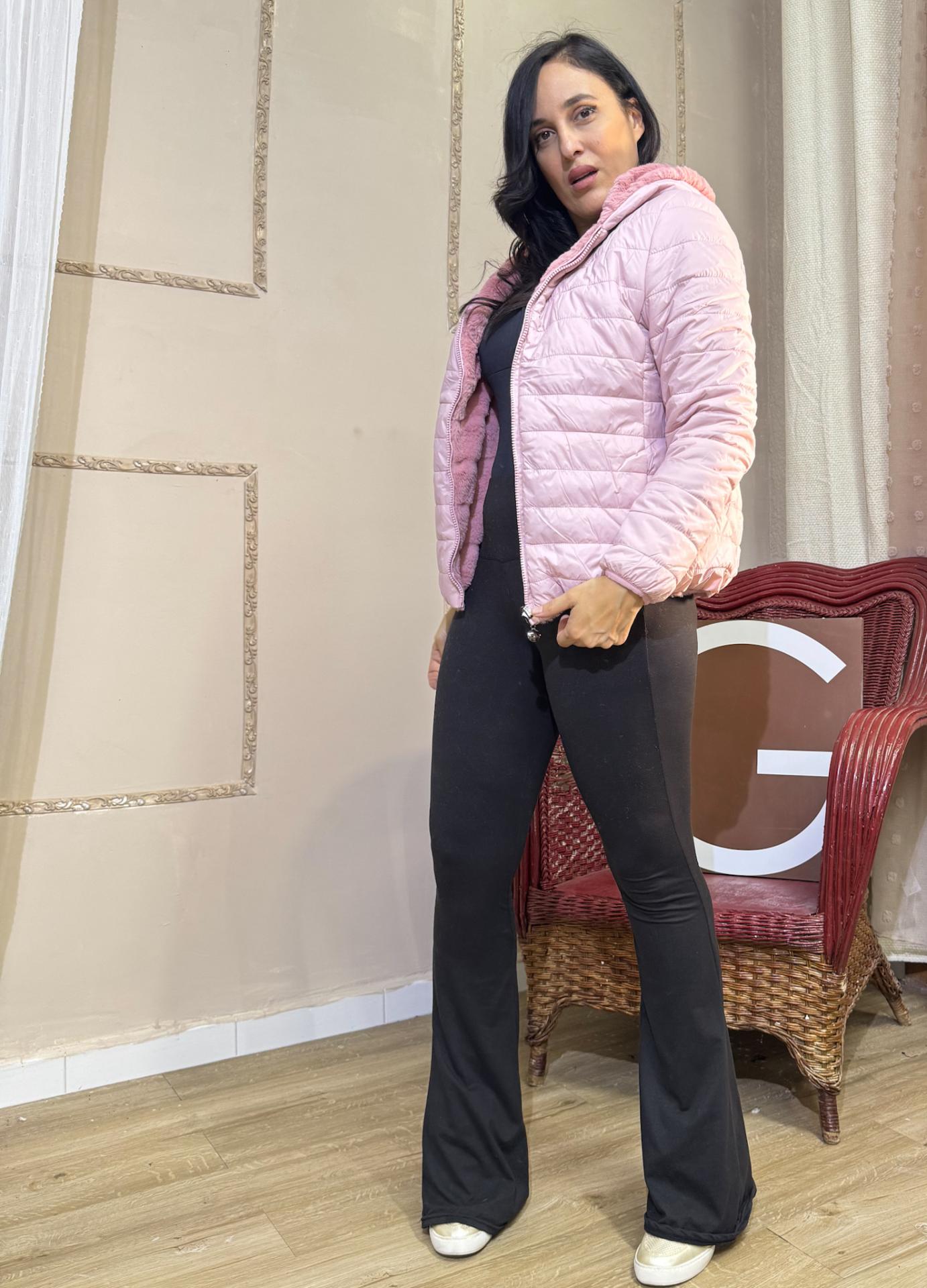 CHAQUETA REVERSIBLE ROSA CON CAPUCHA