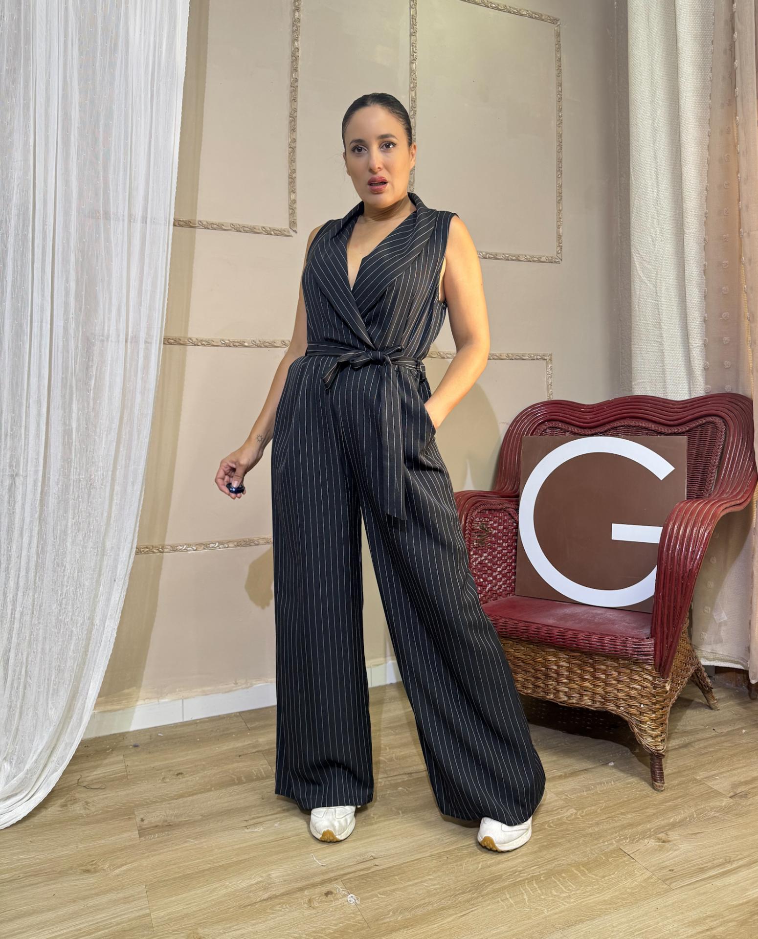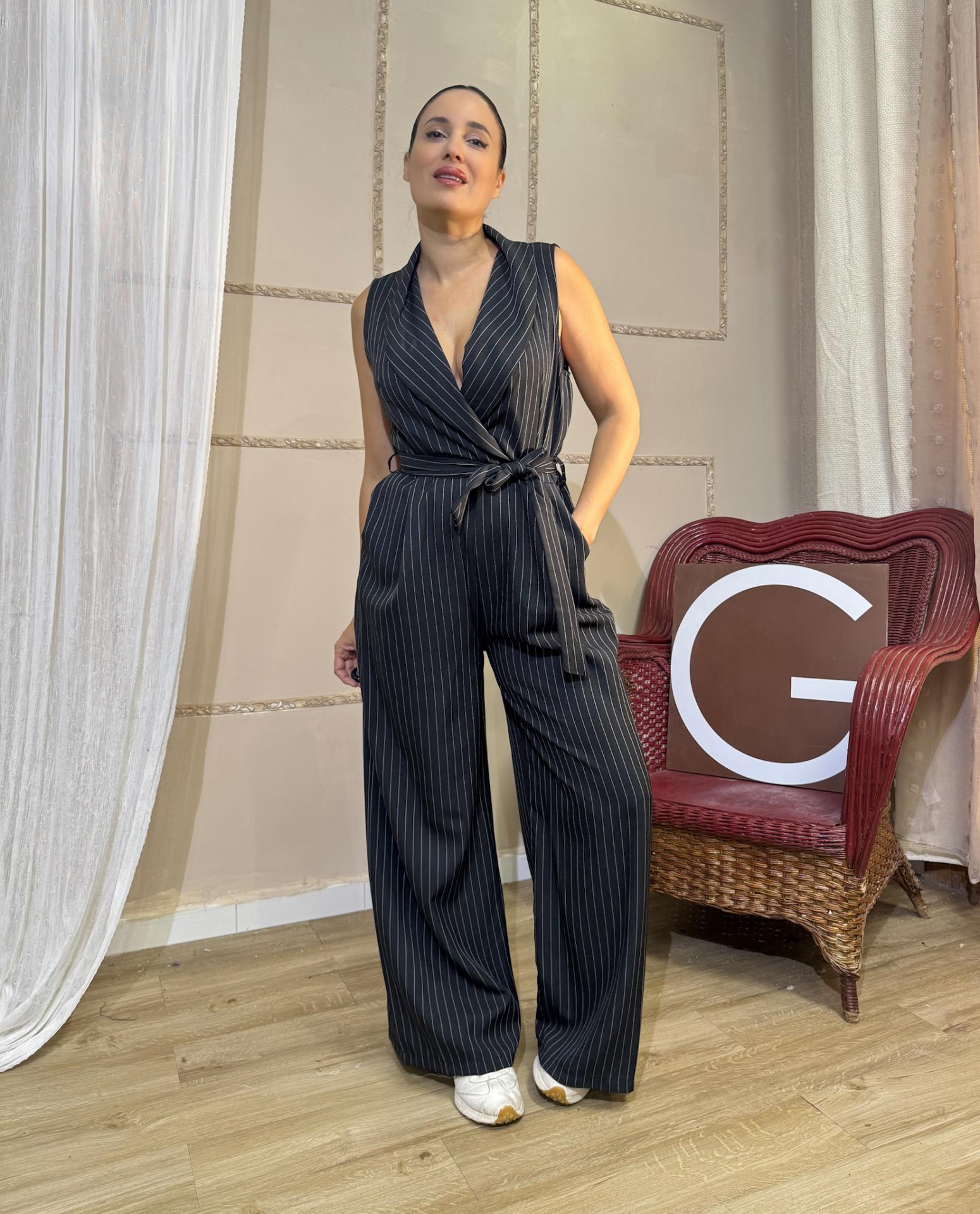 MONO NEGRO SIN MANGAS CON RAYAS BLANCAS