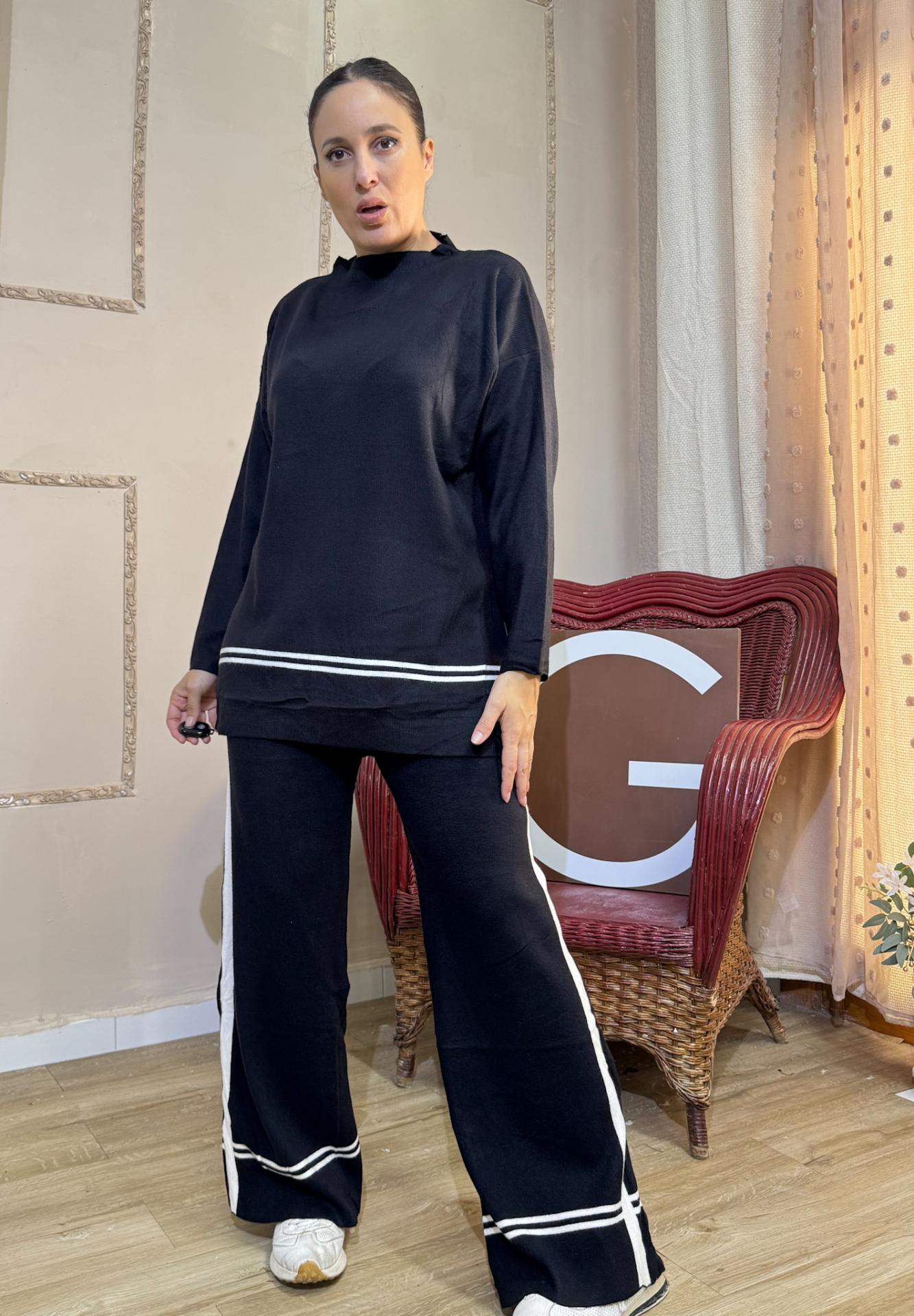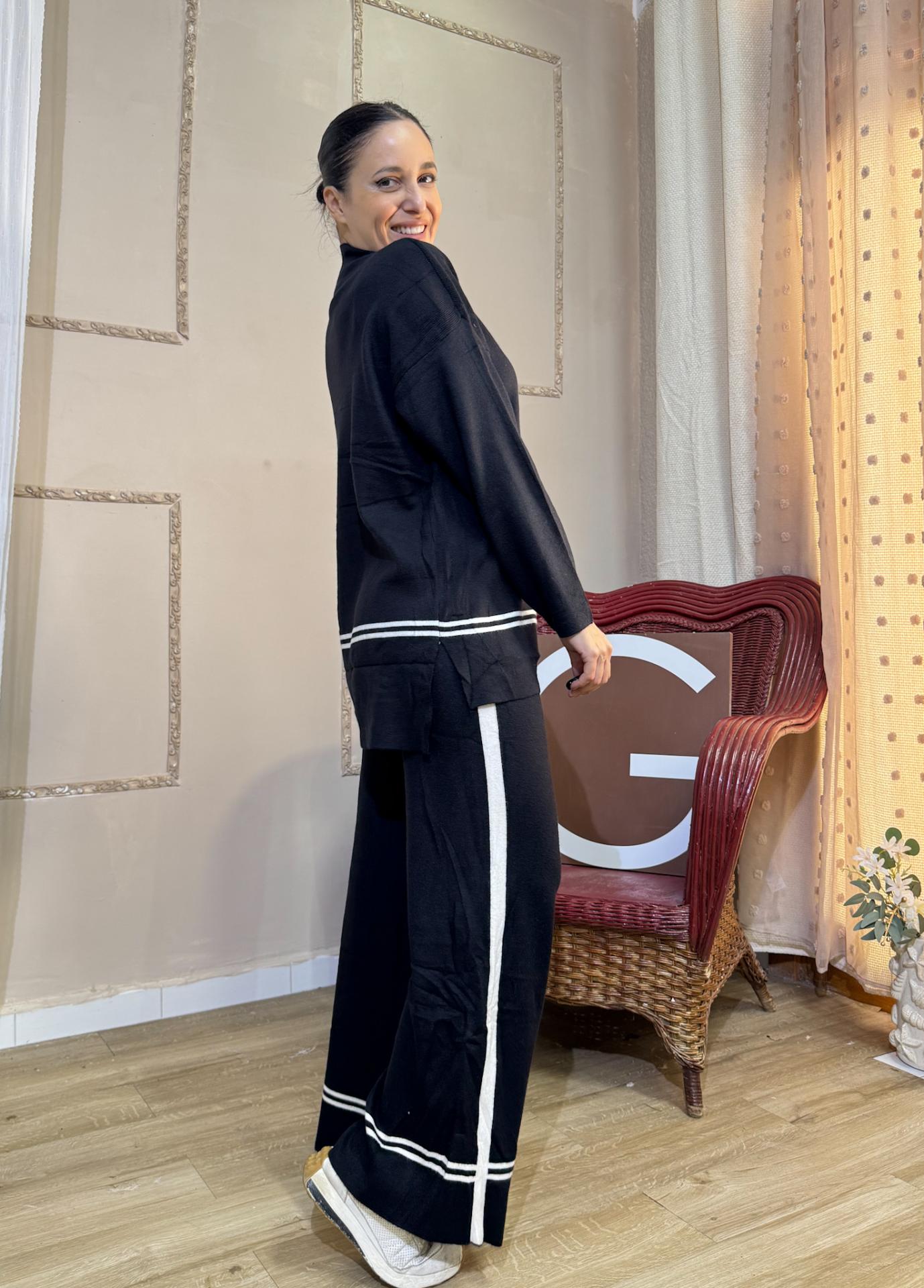 CONJUNTO NEGRO CON RAYAS BLANCAS DE PUNTO