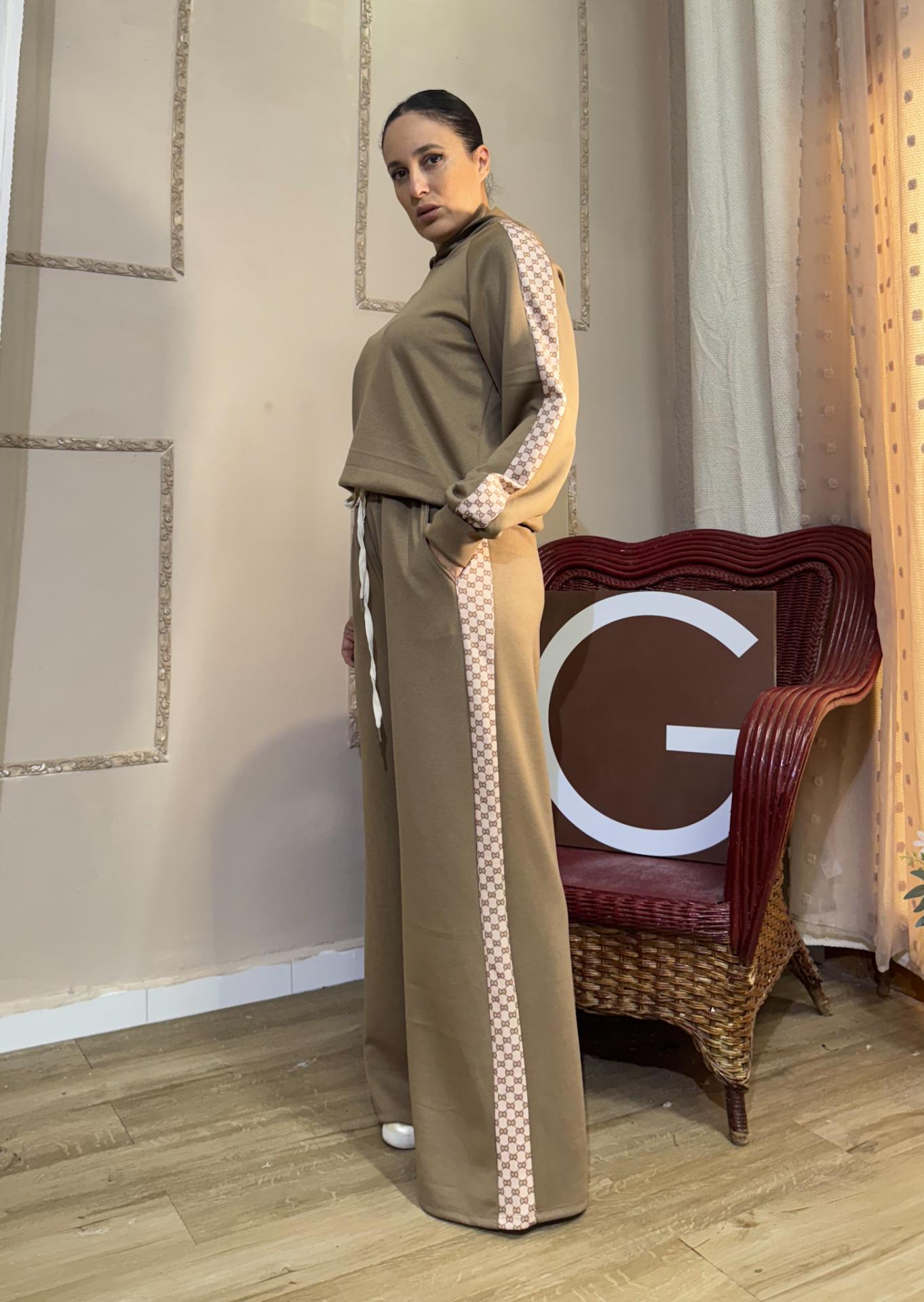 CHANDAL CAMEL CON LATERAL BEIG DE ALGODON