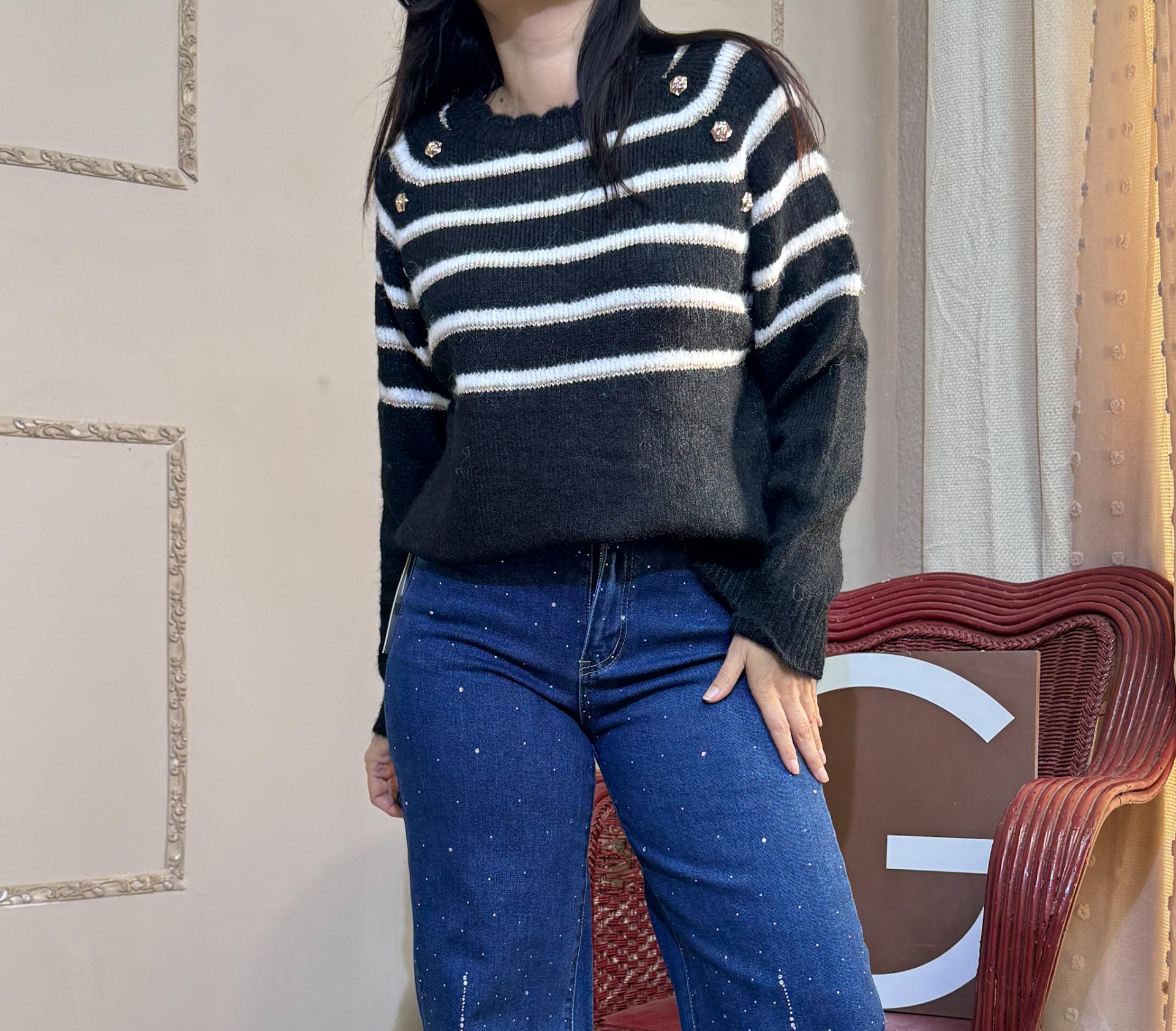 JERSEY NEGRO DE LANA DE RAYAS CON BOTONES DORADOS