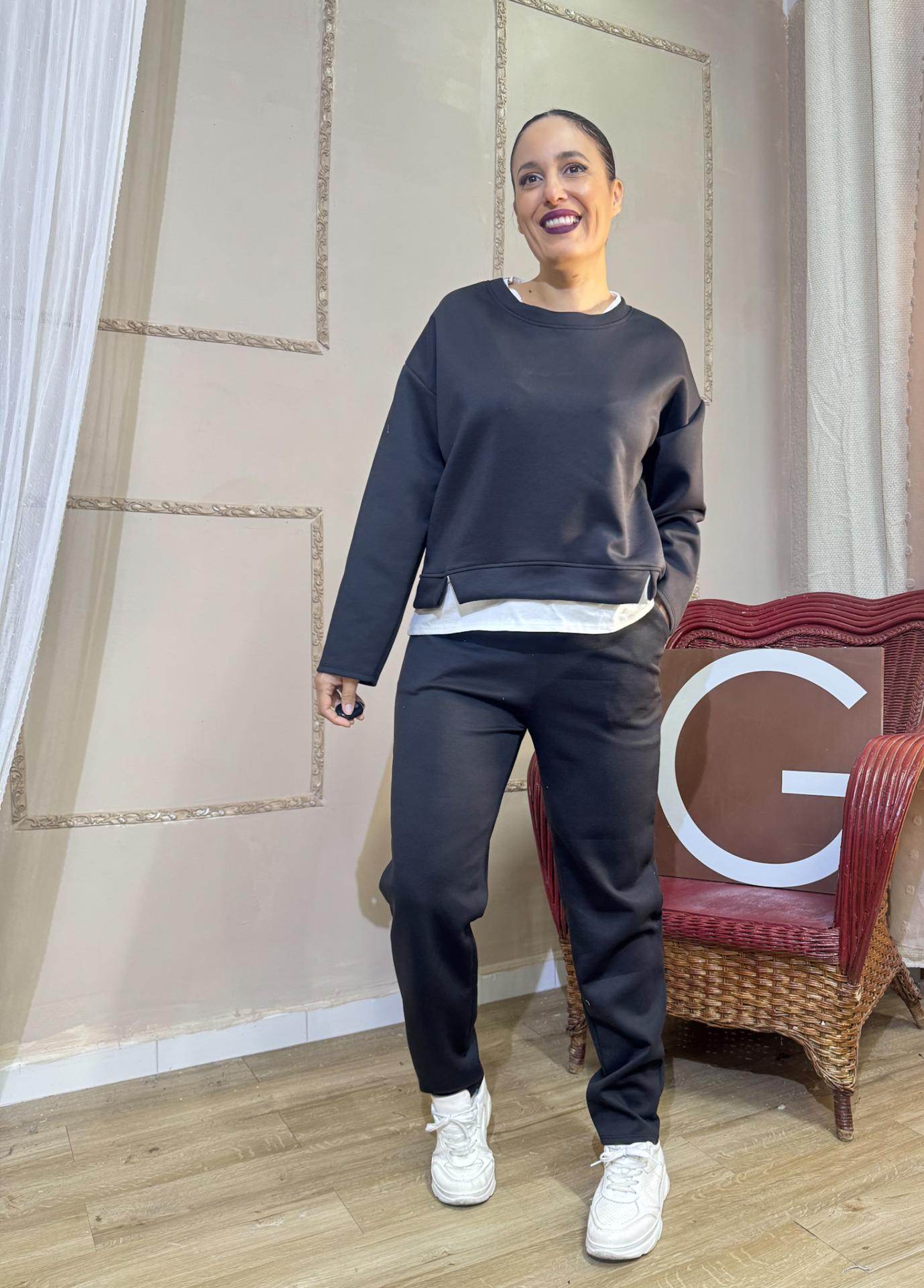 CHANDAL NEGRO CON SOBRE CAMISA BLANCA