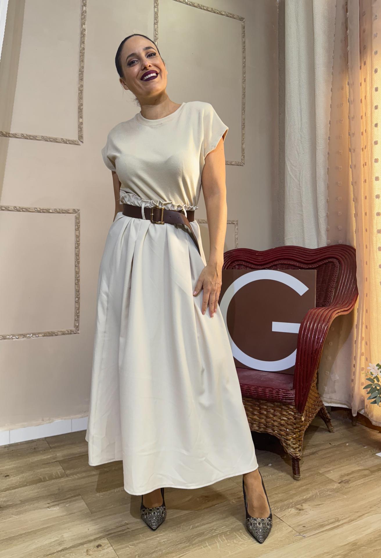 VESTIDO BEIG CAMISETA FALDA CINTURON INCLUIDO