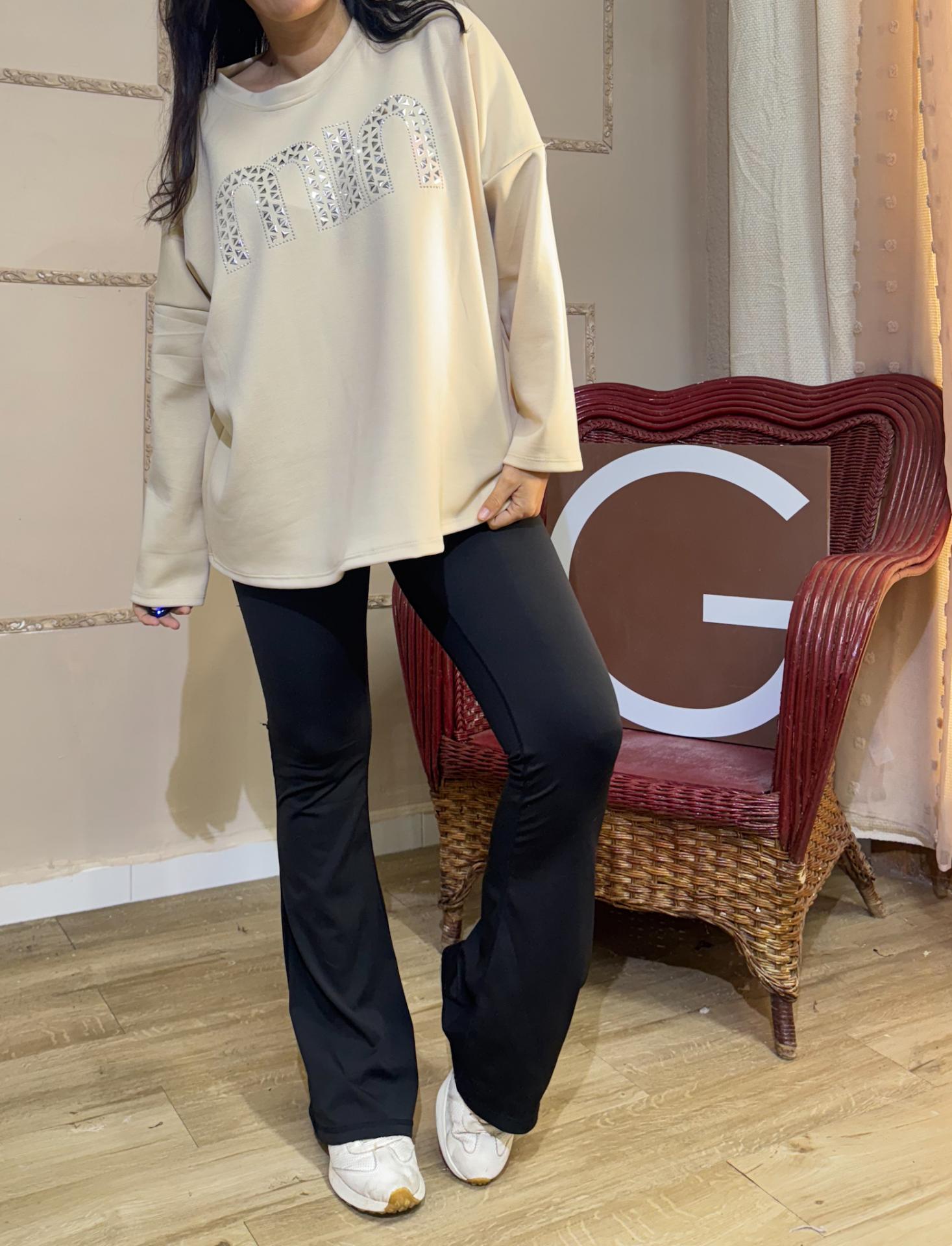 SUDADERA BEIG OBERSAY CHAPAS PLATEADAS