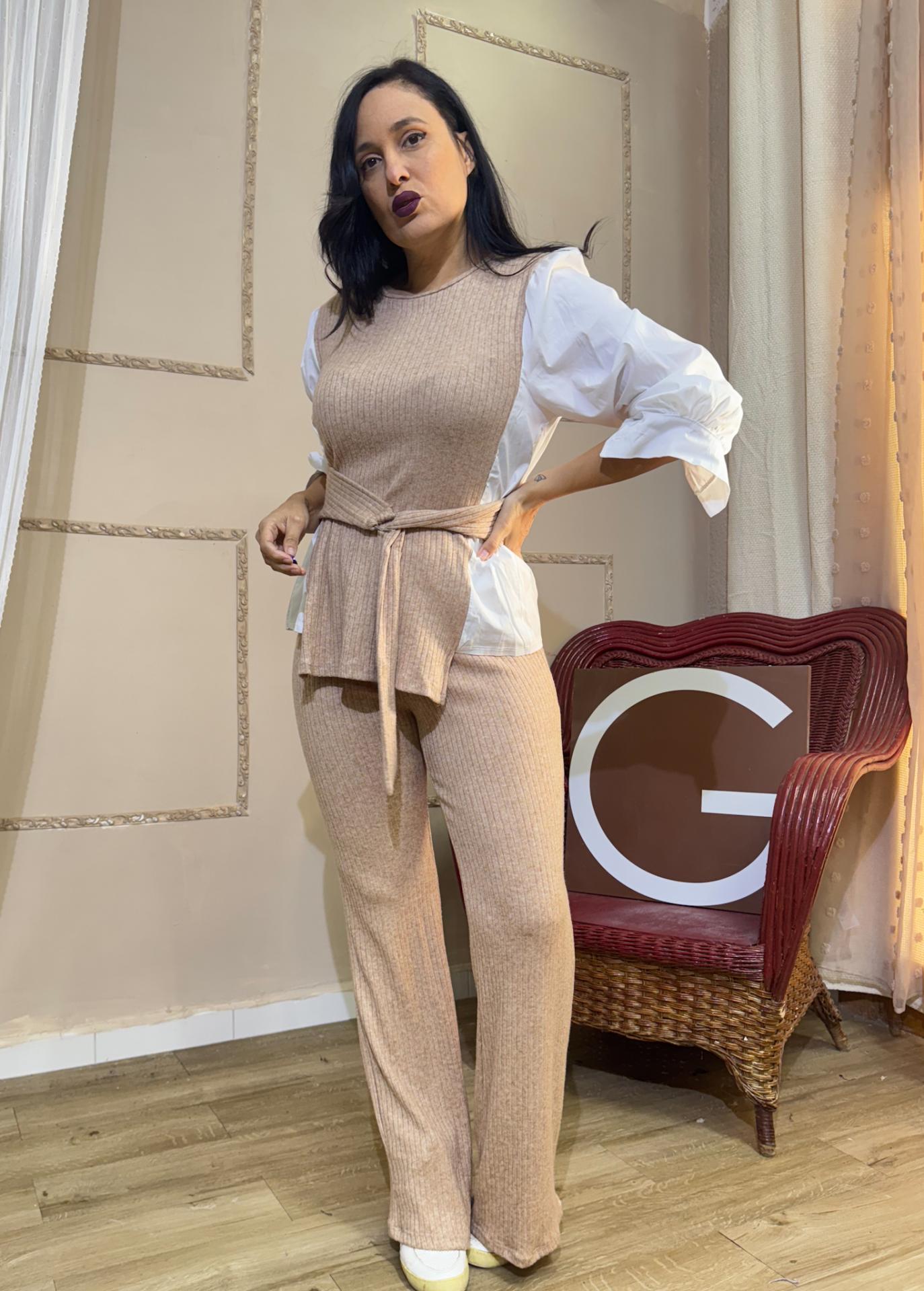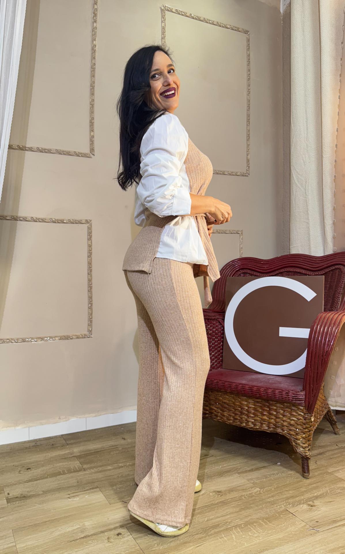 CONJUNTO BEIG DE PUNTO MANGAS DE CAMISA