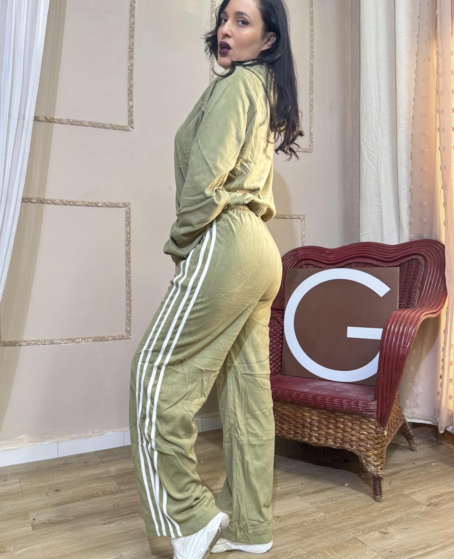 CHANDAL VERDE PIEL DE MELOCOTON CON RAYAS BLANCAS SUDADERA CAPUCHA