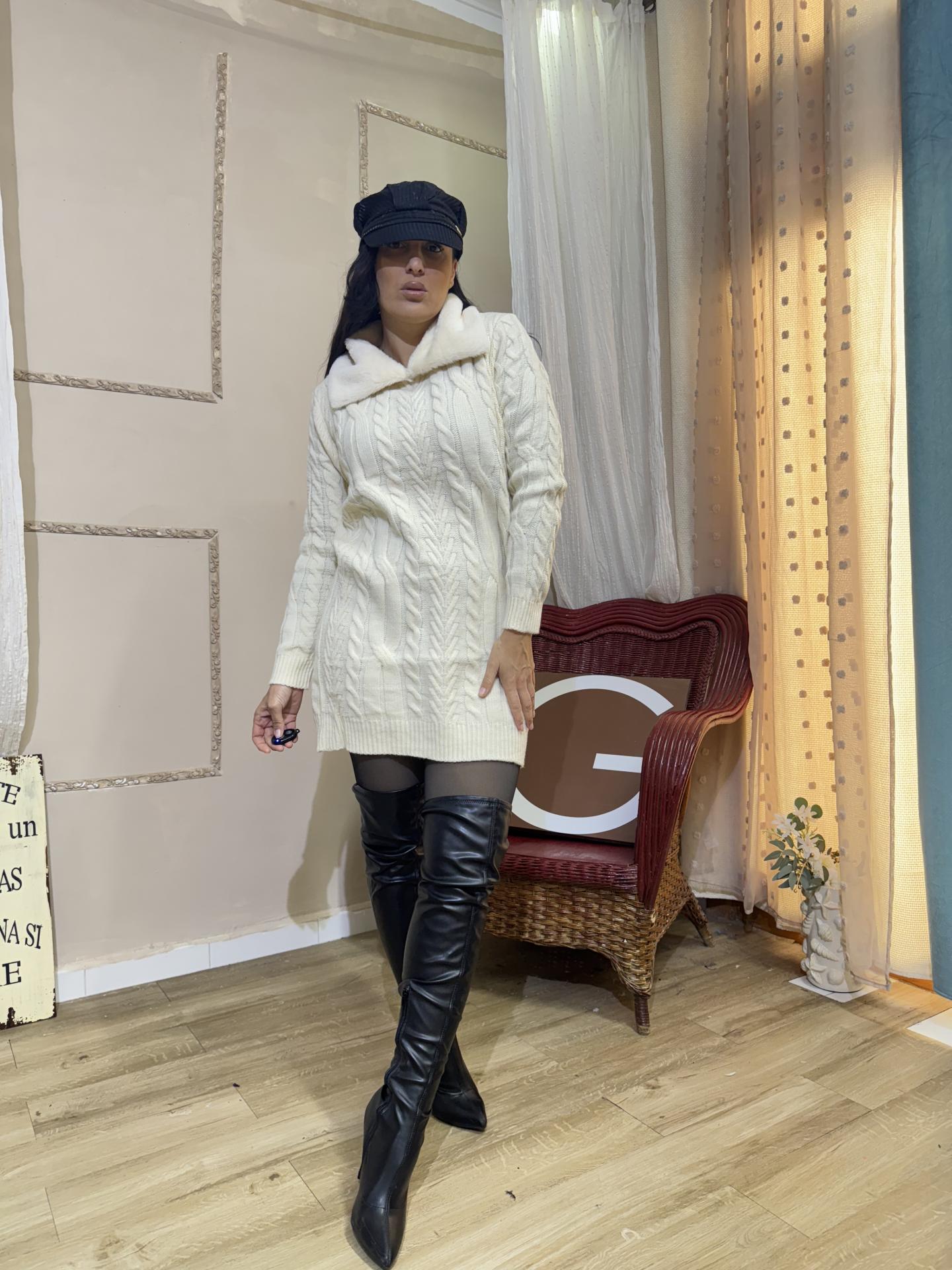VESTIDO DE PUNTO CUELLO PELO BEIG