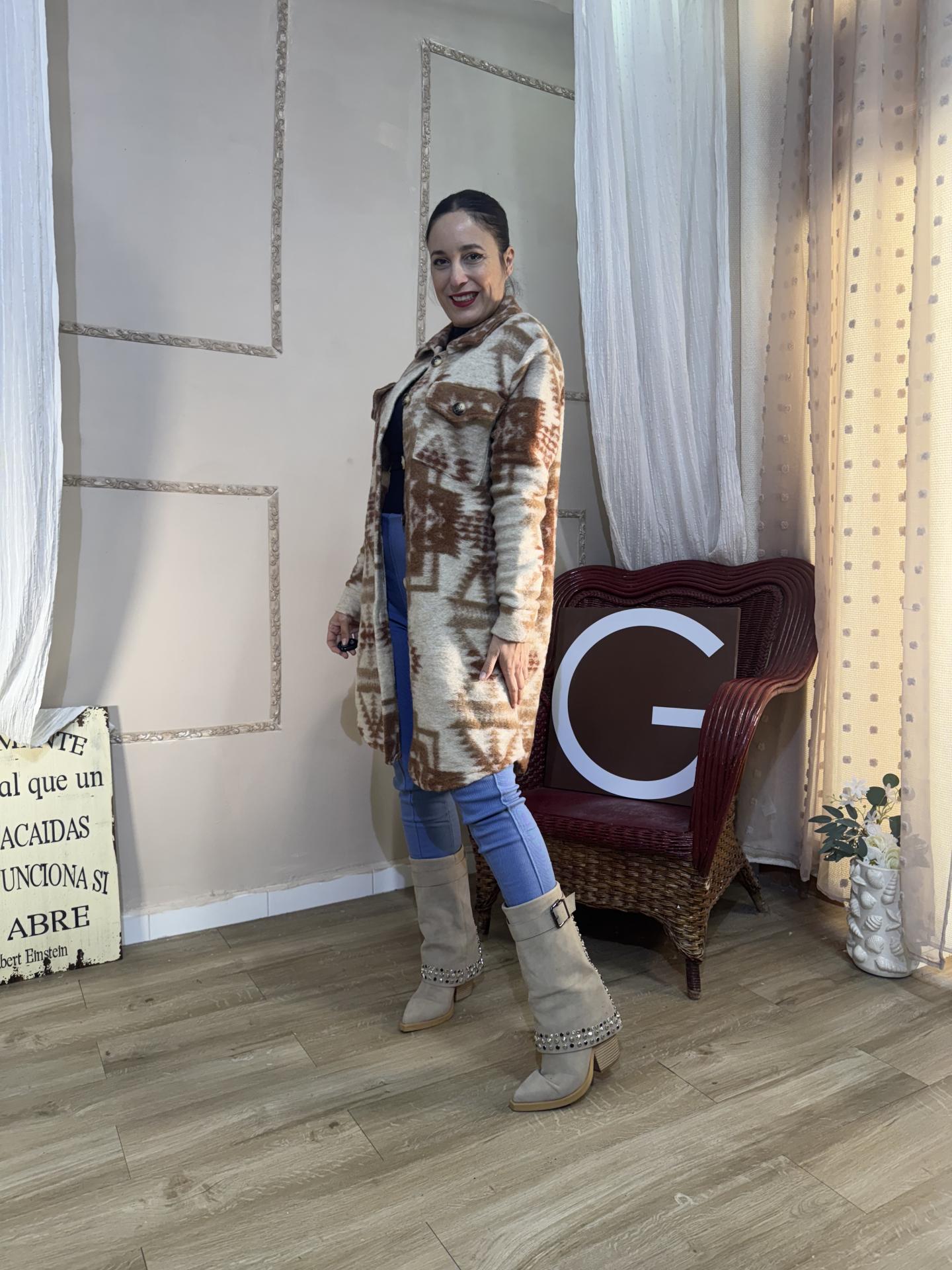 ABRIGO CAMISERO ETNICO MARRON BEIG