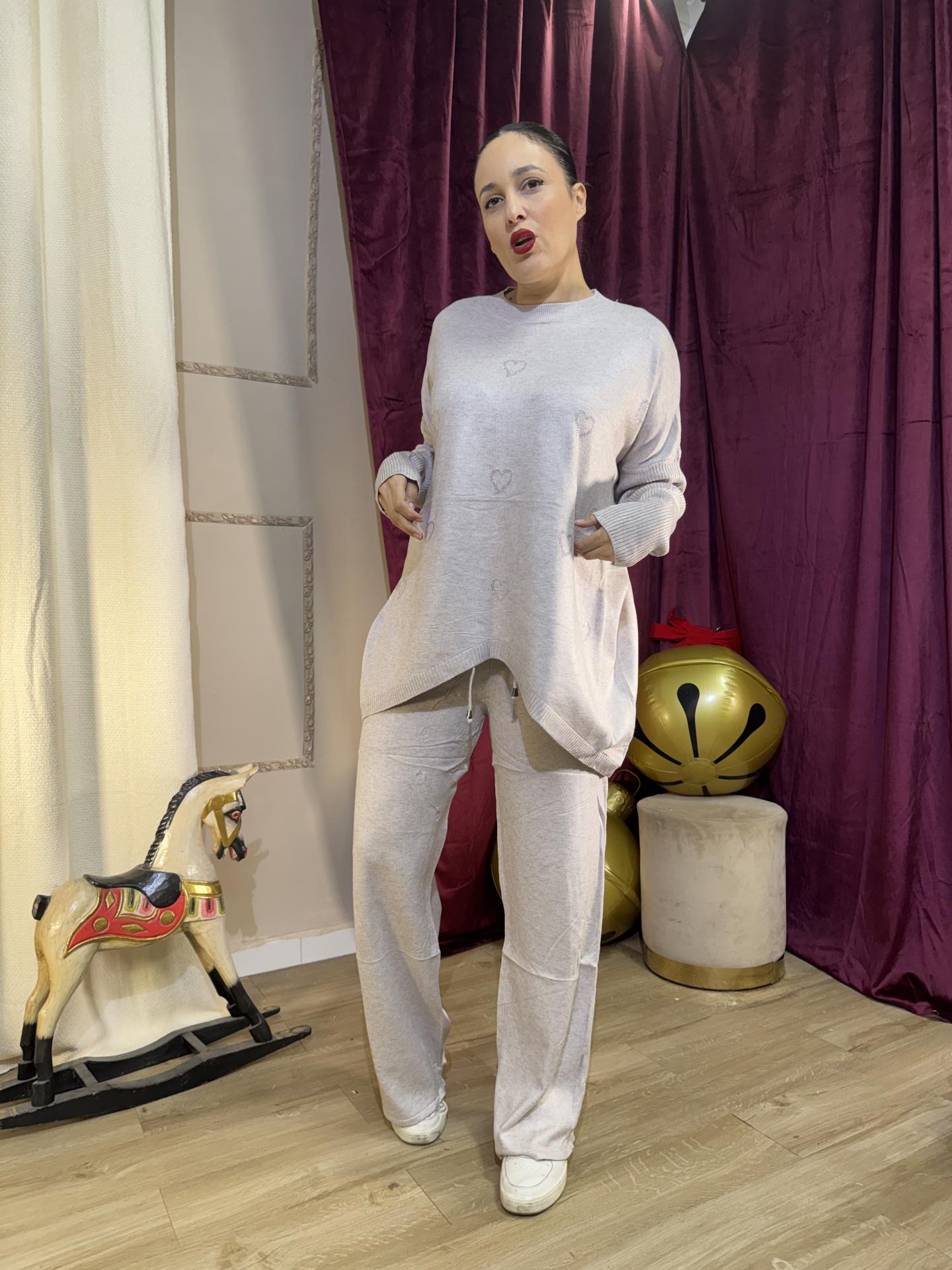 CONJUNTO GRIS CLARITO JERSEY OBERSAY CORAZONCITOS