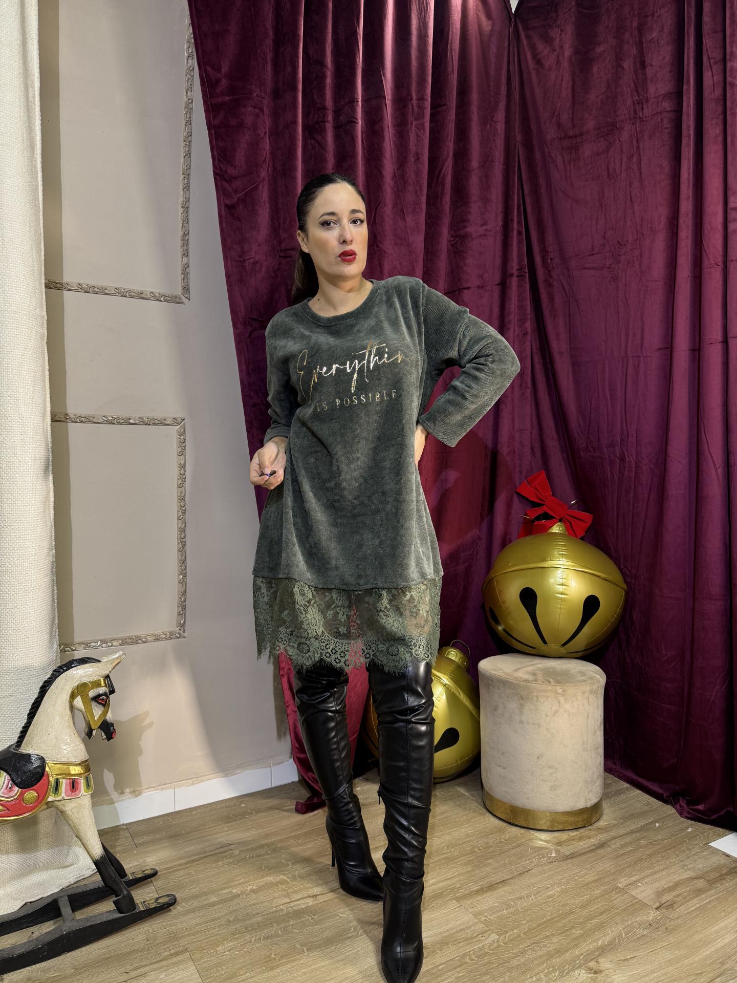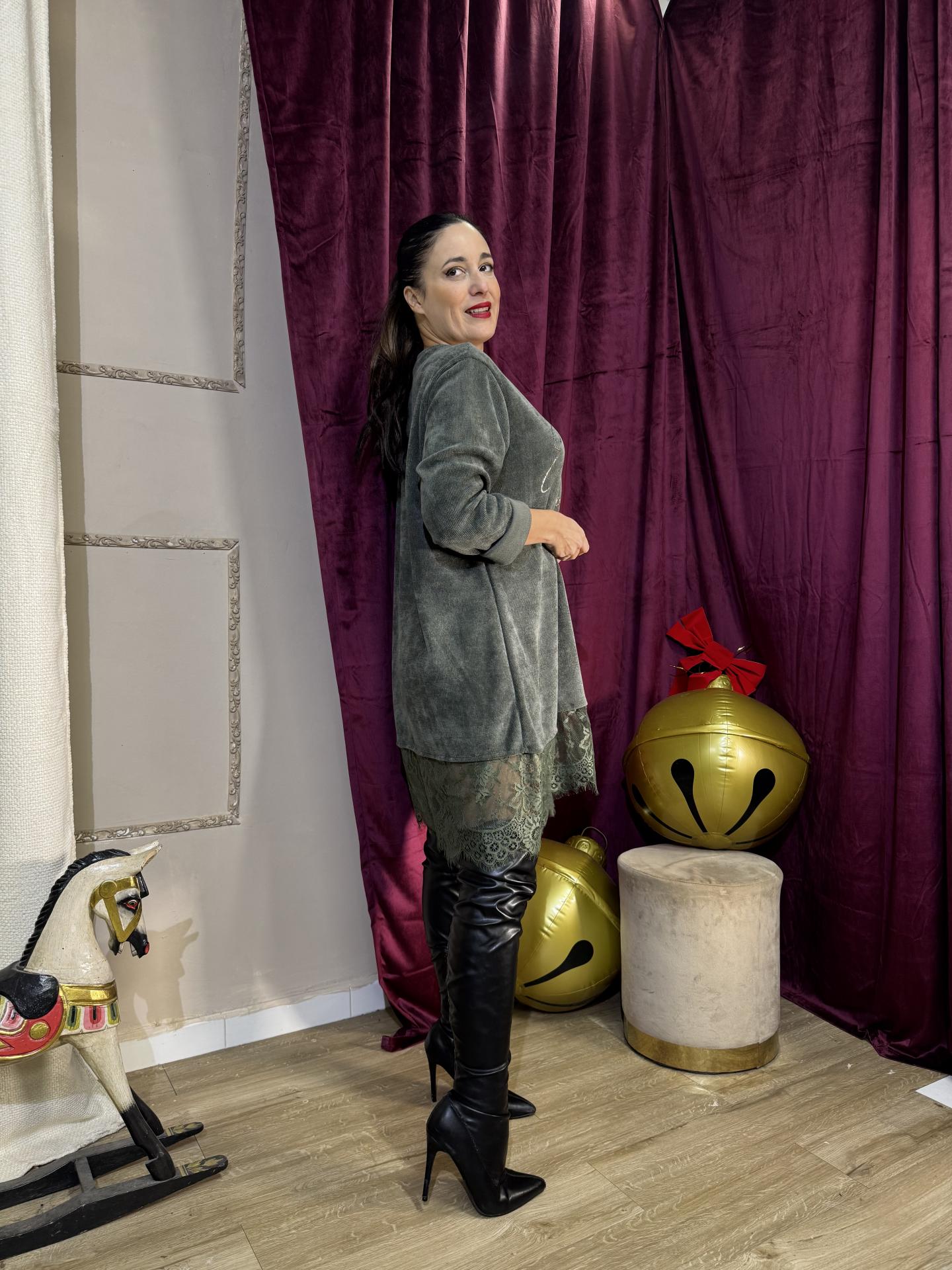 VESTIDO VERDE PANILLA CON ENCAJE BAJO