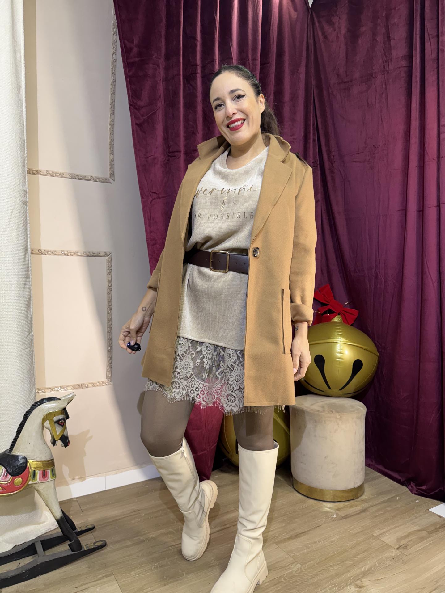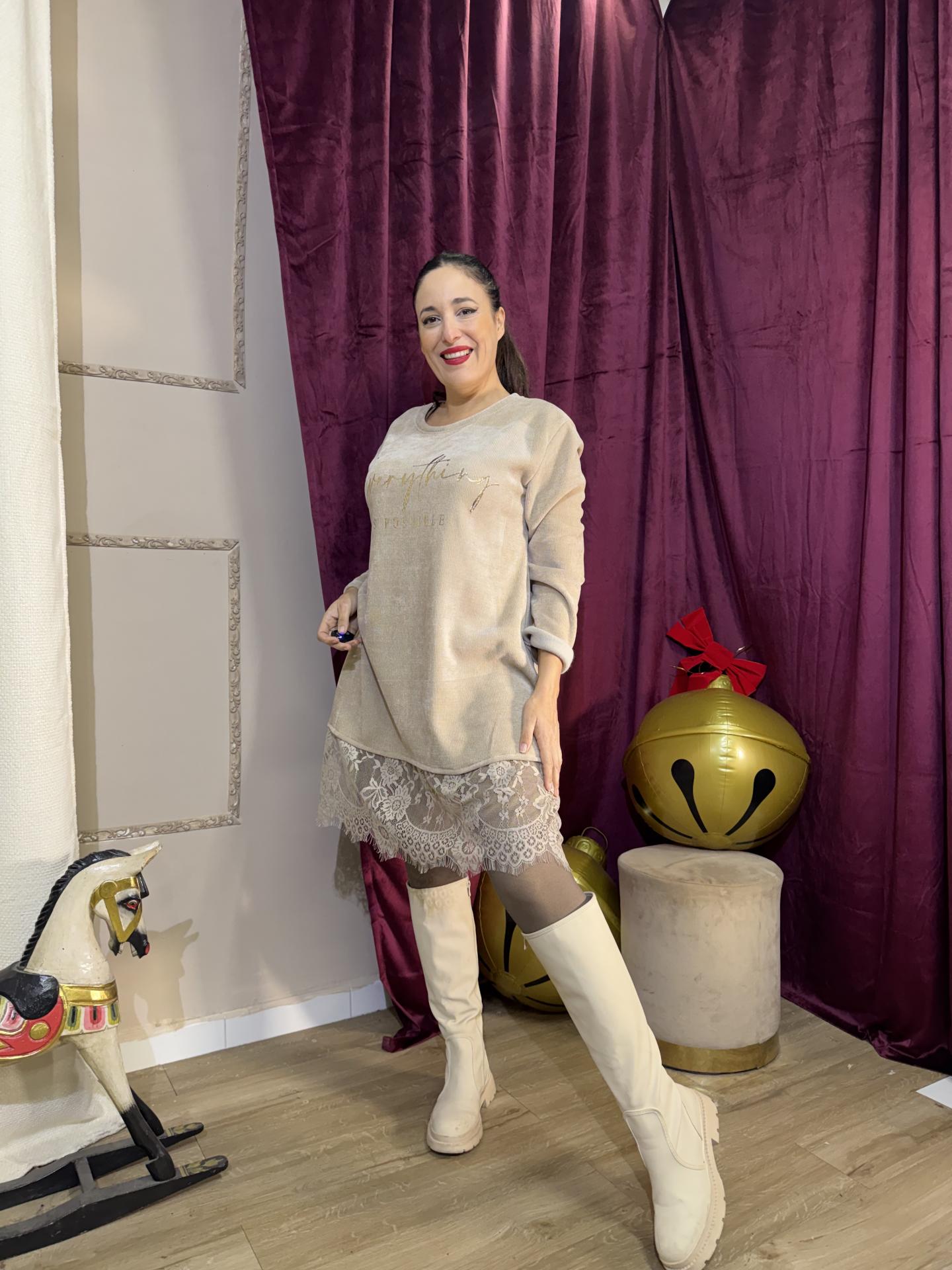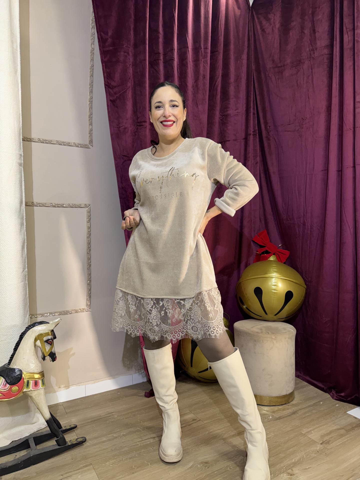 VESTIDO BEIG PANILLA CON ENCAJE BAJO