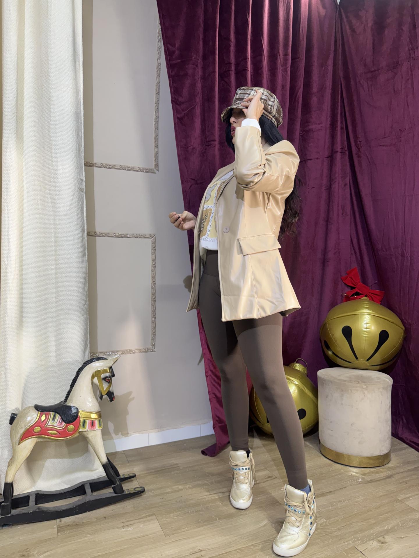 CHAQUETA POLIPIEL CORTE AMERICANA BEIG