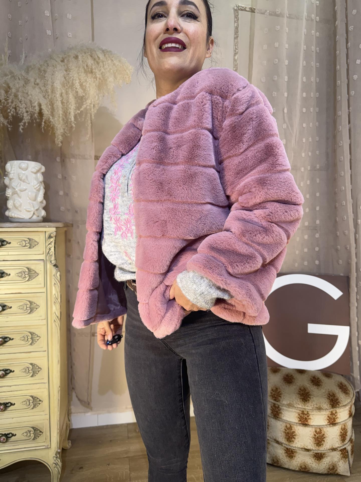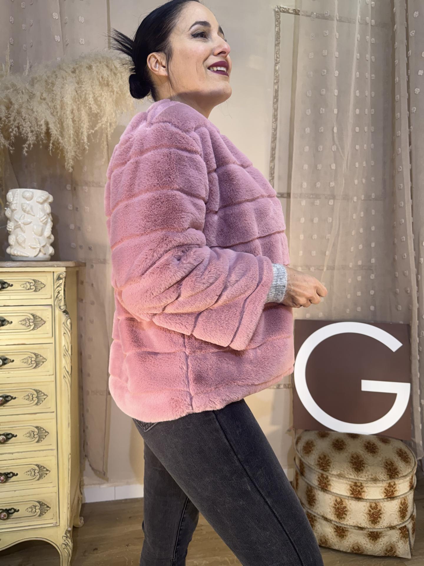 CHAQUETA PELOCHO ROSA CHICLE SIN CAPUCHA