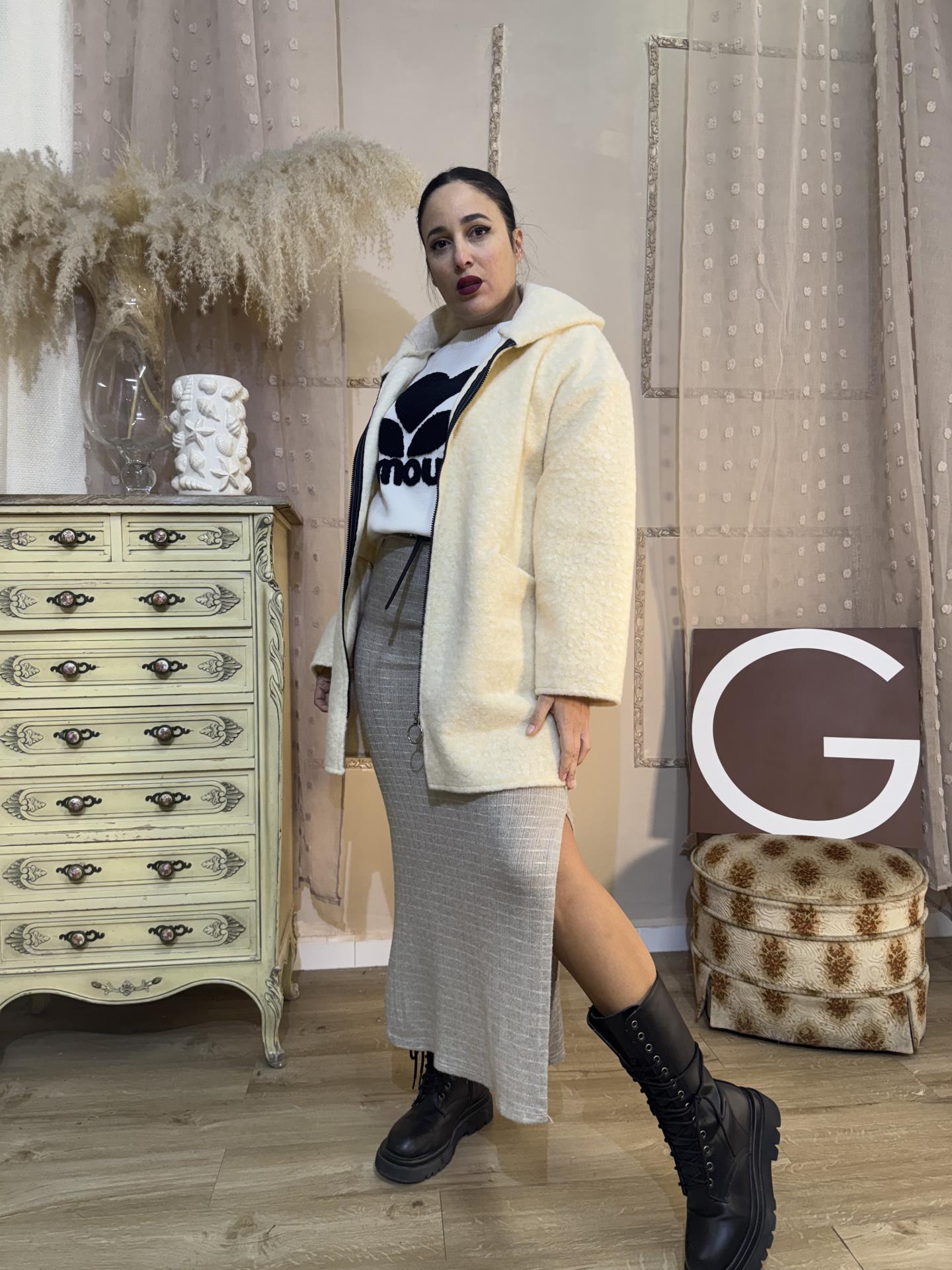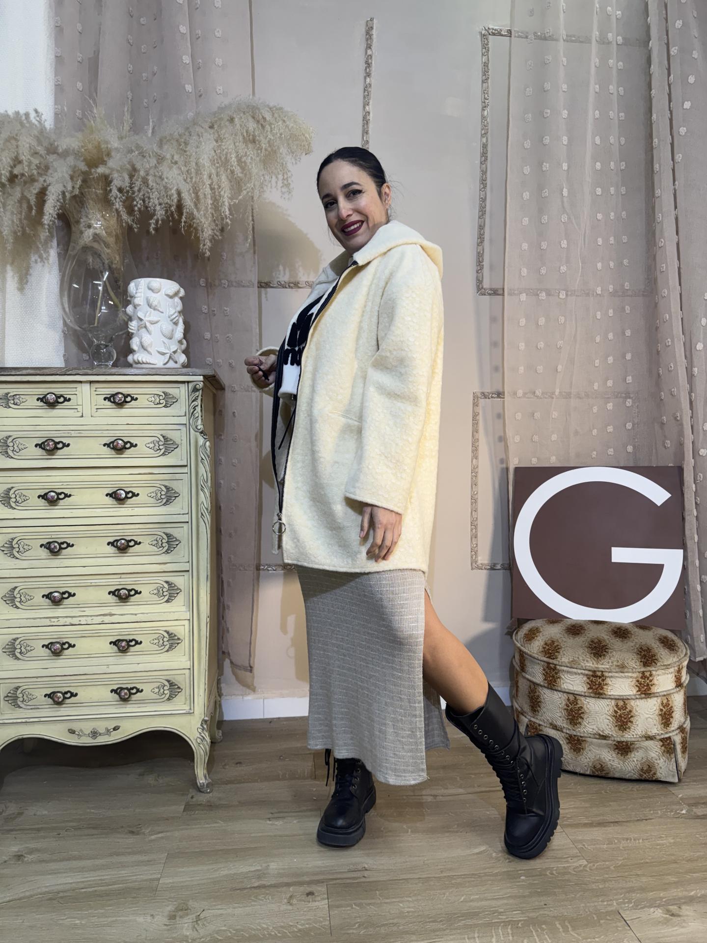CHAQUETA BEIG CON CAPUCHA Y CREMALLERA