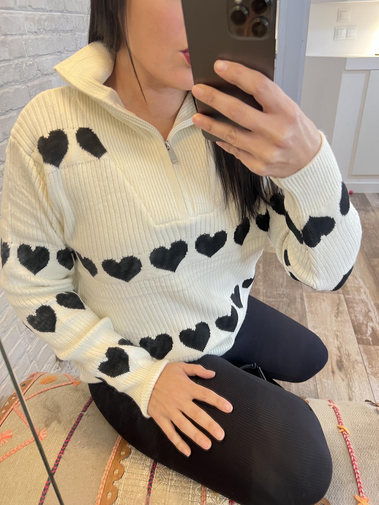 JERSEYCOLOR BLANCO ROTO CON CORAZON NEGRO