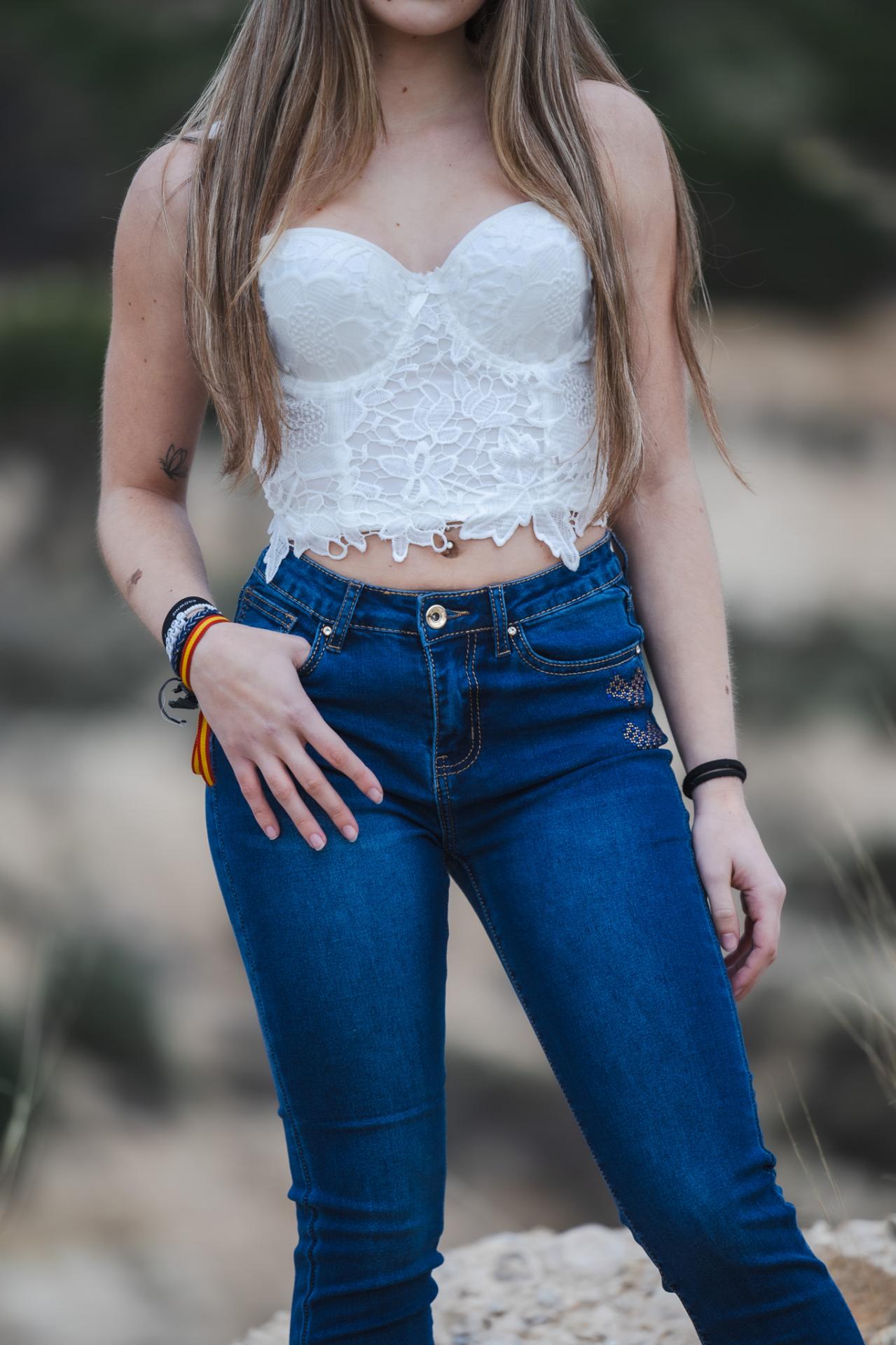 PANTALON VAQUERO DE PITILLO DETALLES DORADOS EN BOLSILLOS