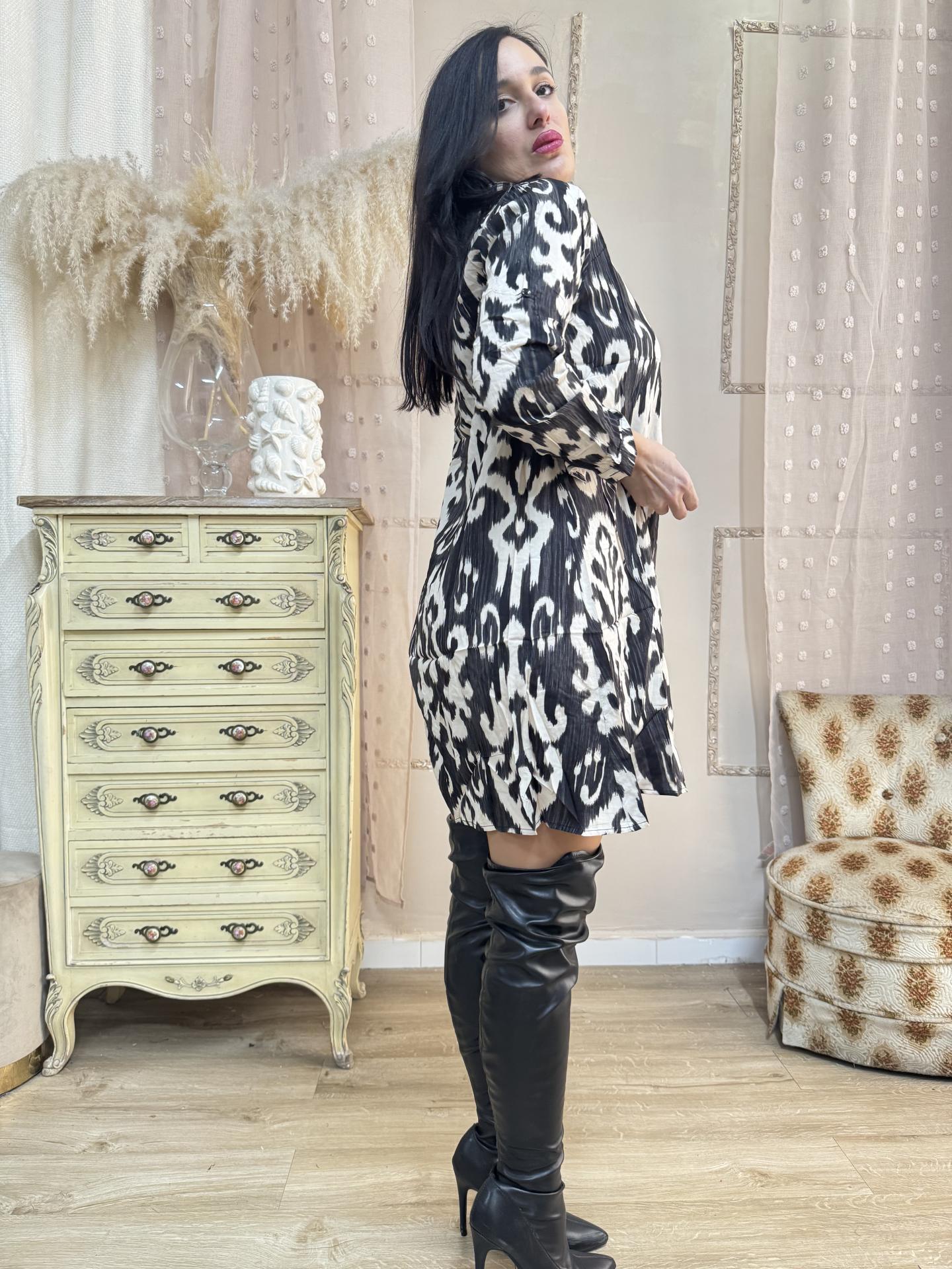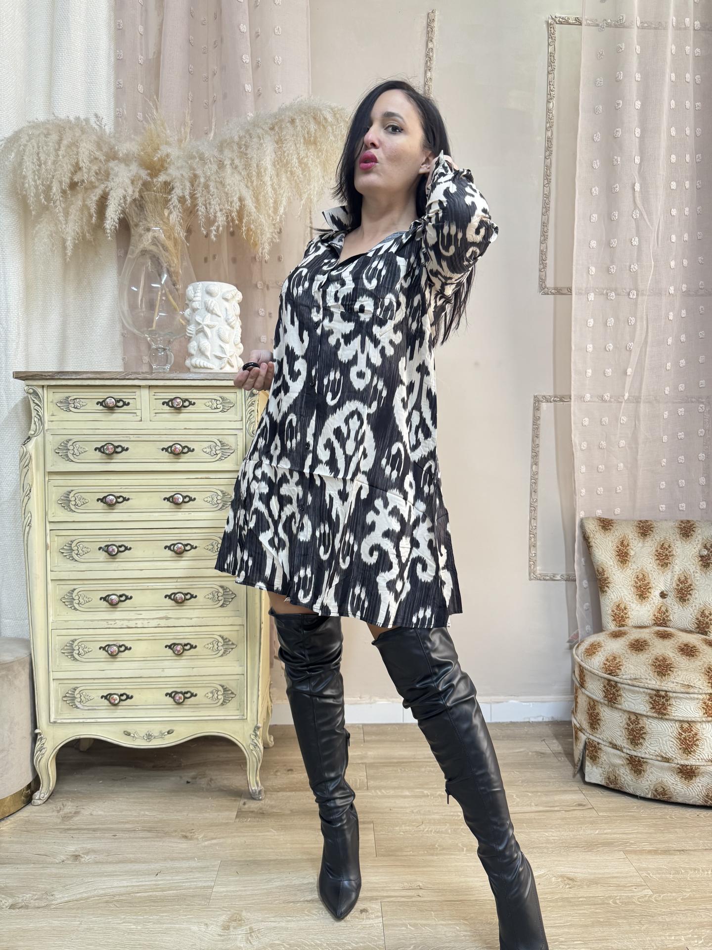 VESTIDO CAMISERO TONOS BEIG Y NEGRO