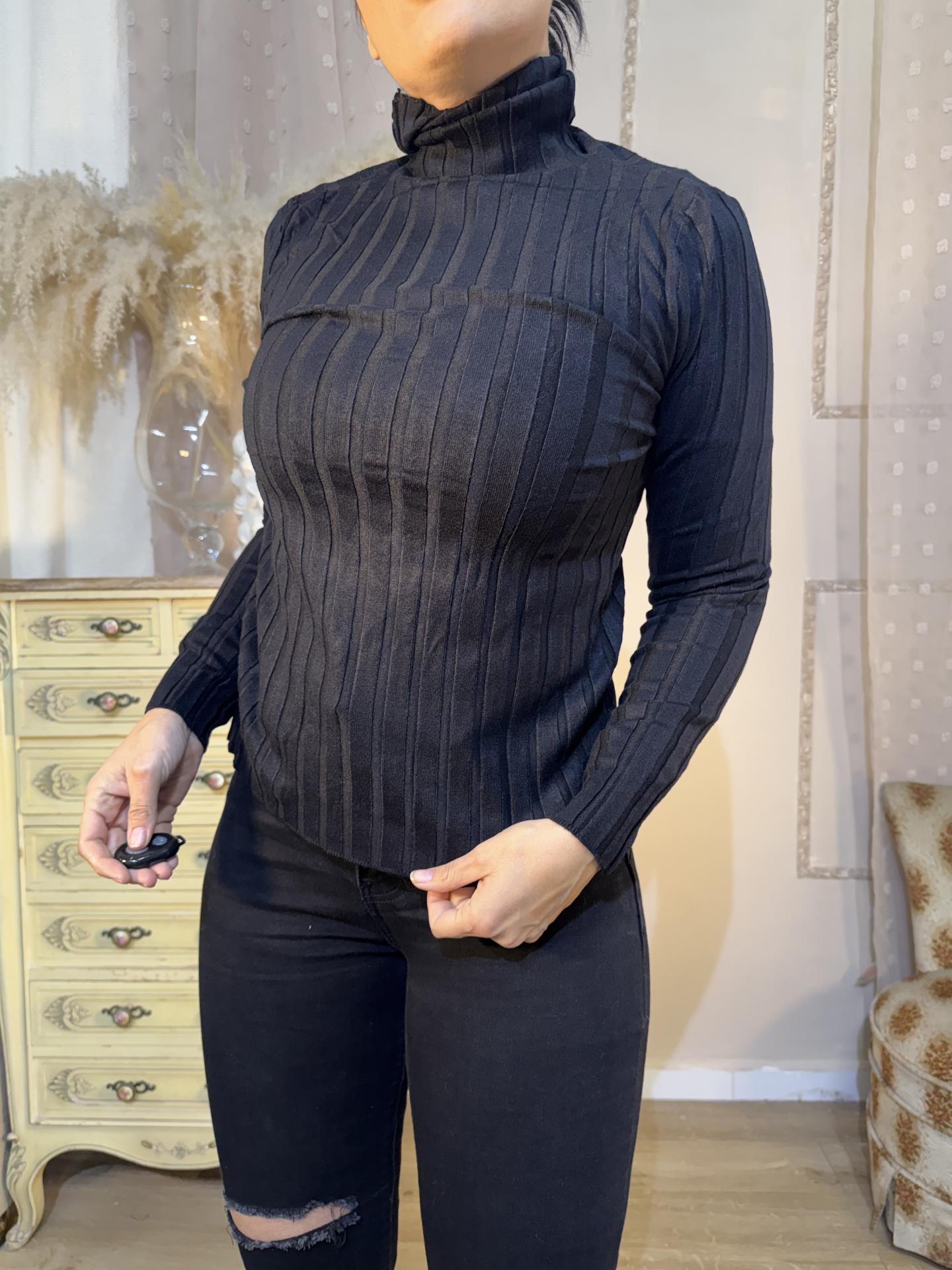 JERSEY DE CUELLO VUELTO BASICO COLOR NEGRO