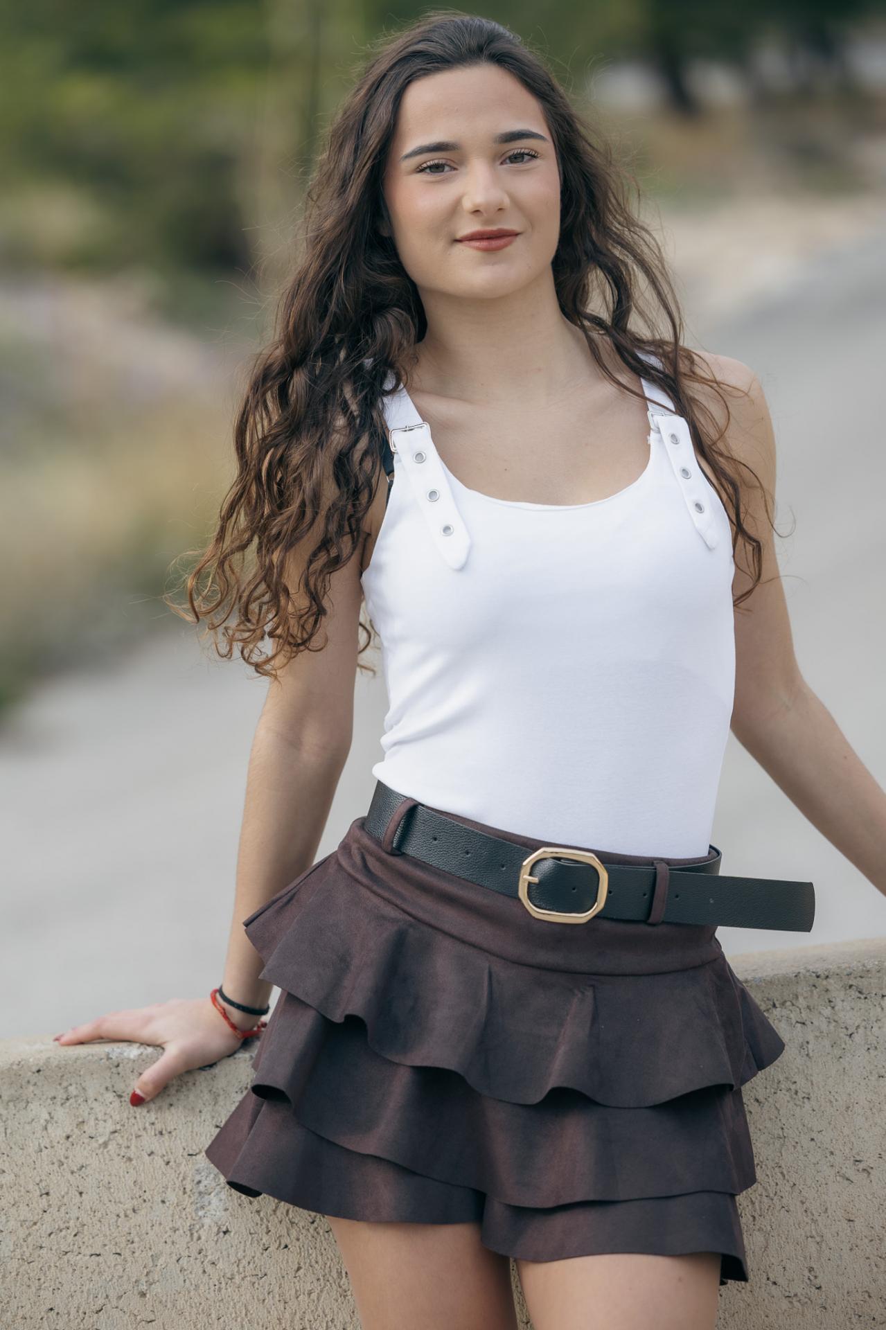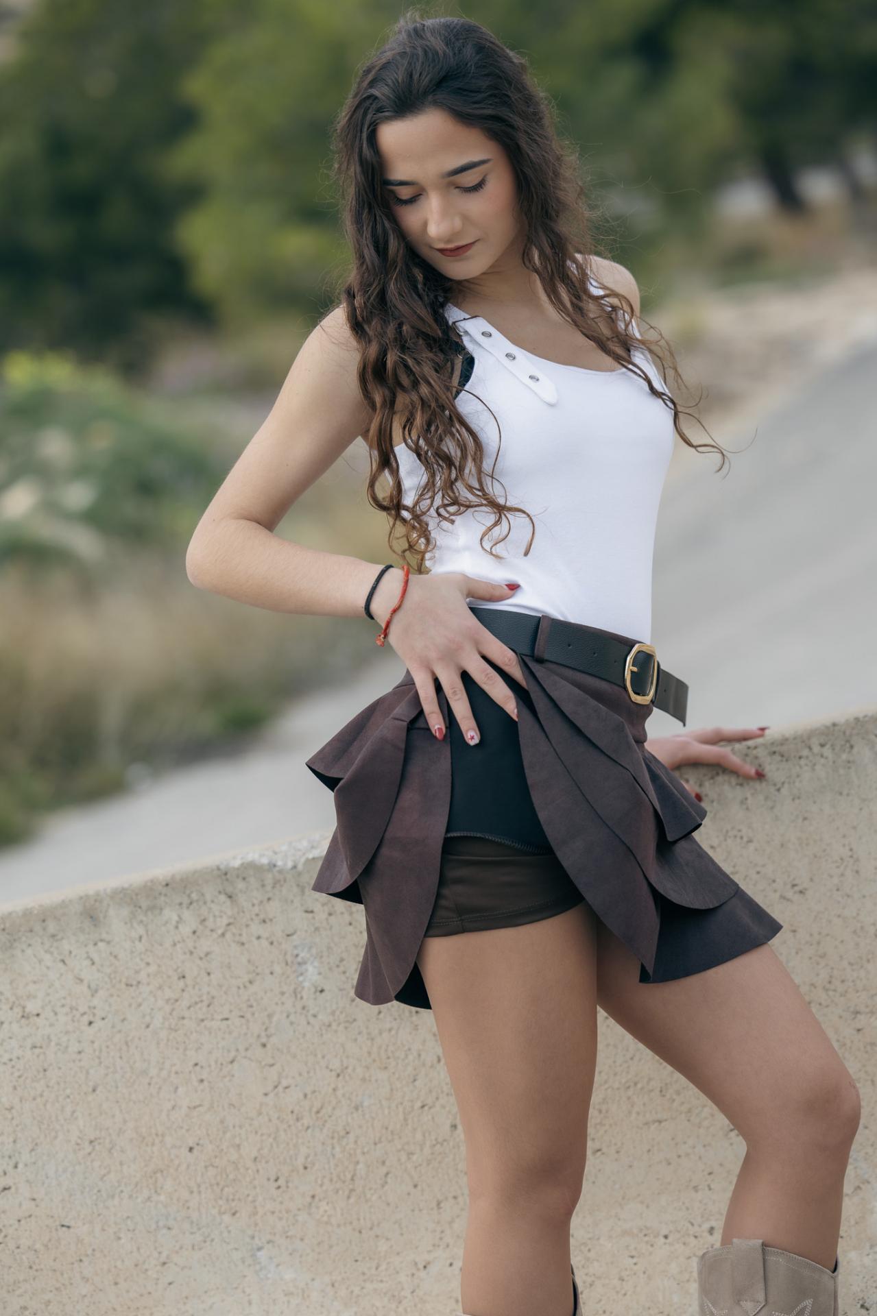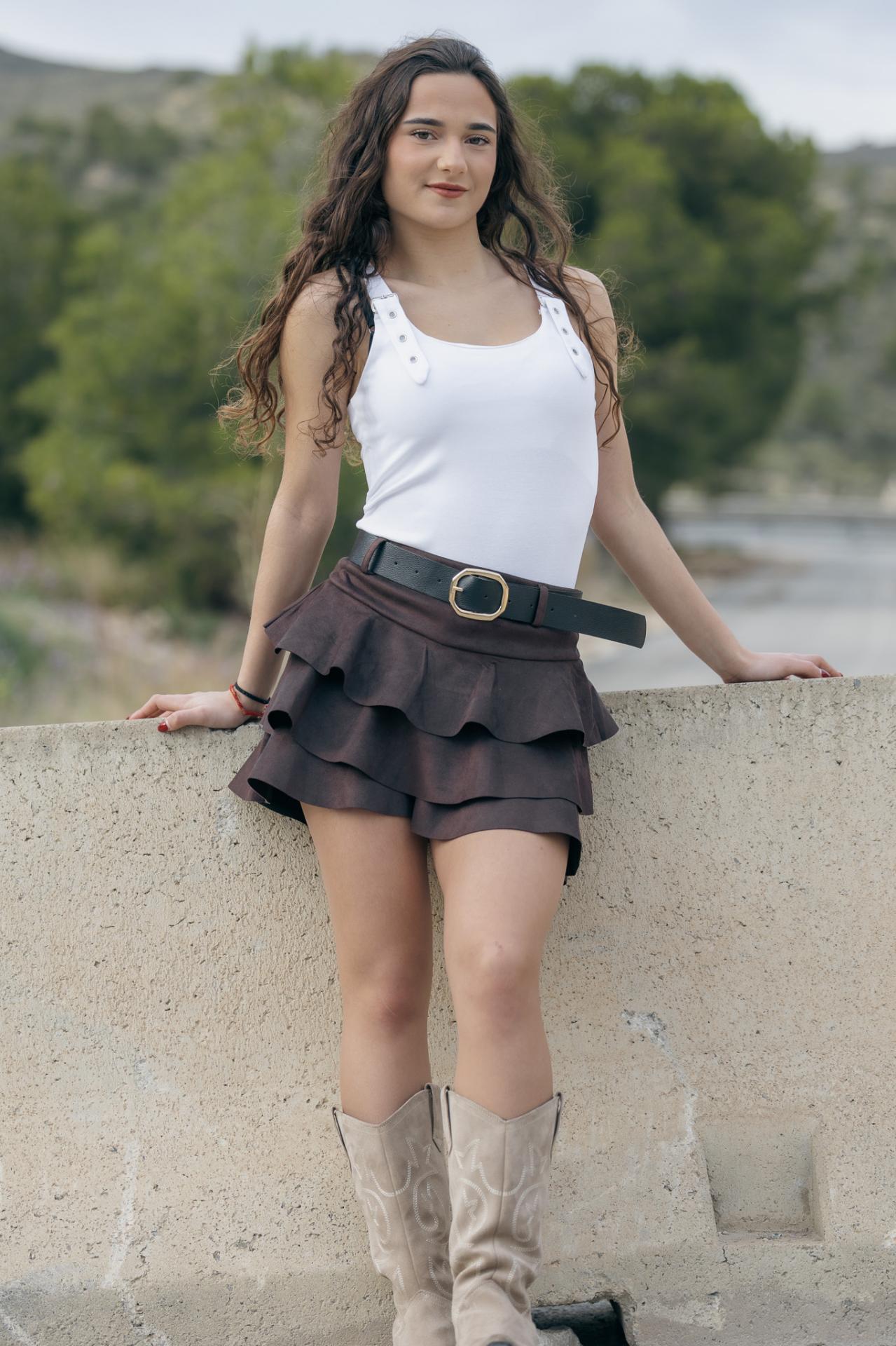 FALDA MARRON PANTALON TIPO ANTELINA CON VOLATE