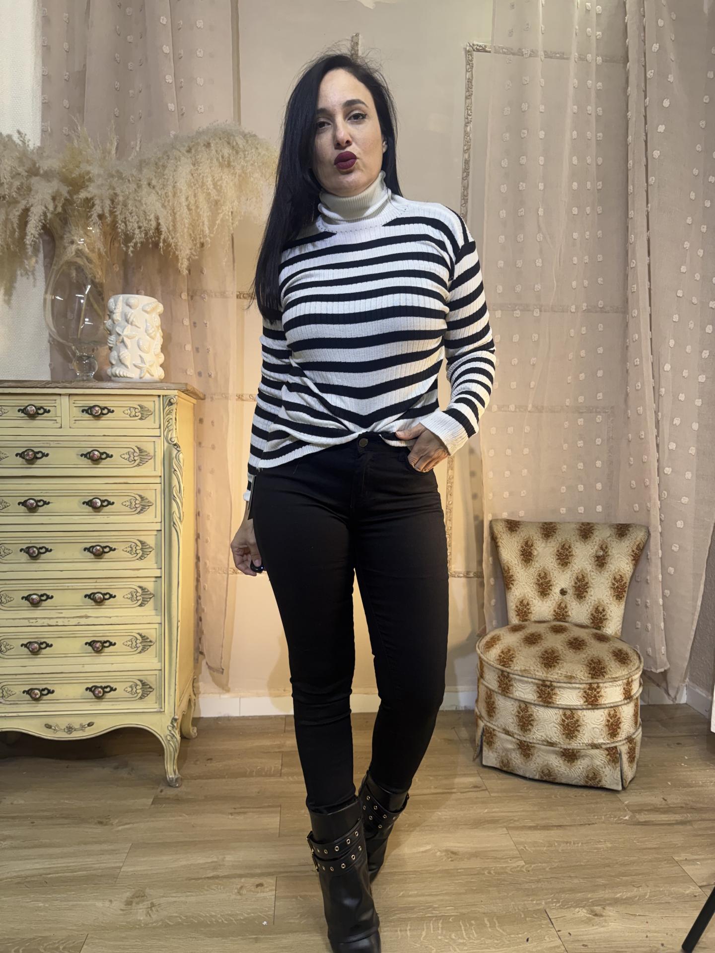 JERSEY CUELLO RAYAS BLANCO