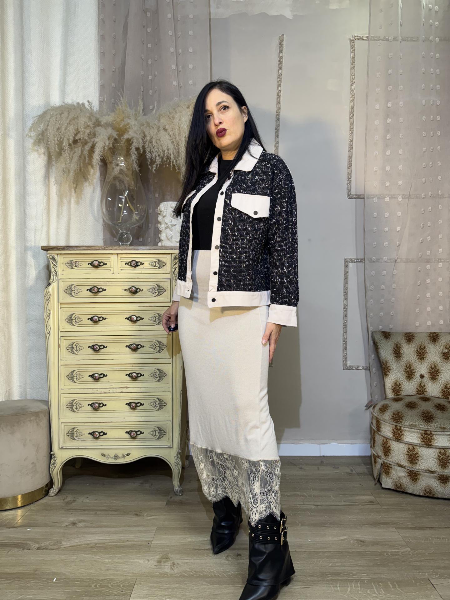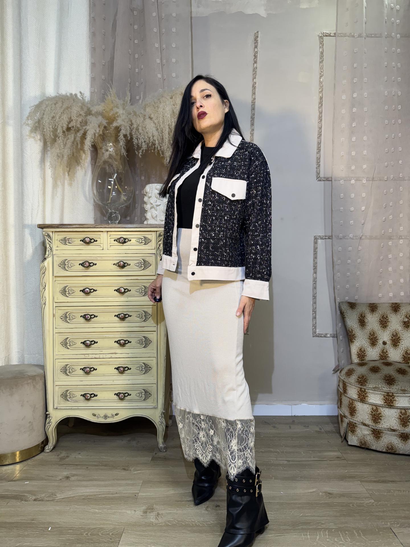 FALDA CON ENCAJE BEIG