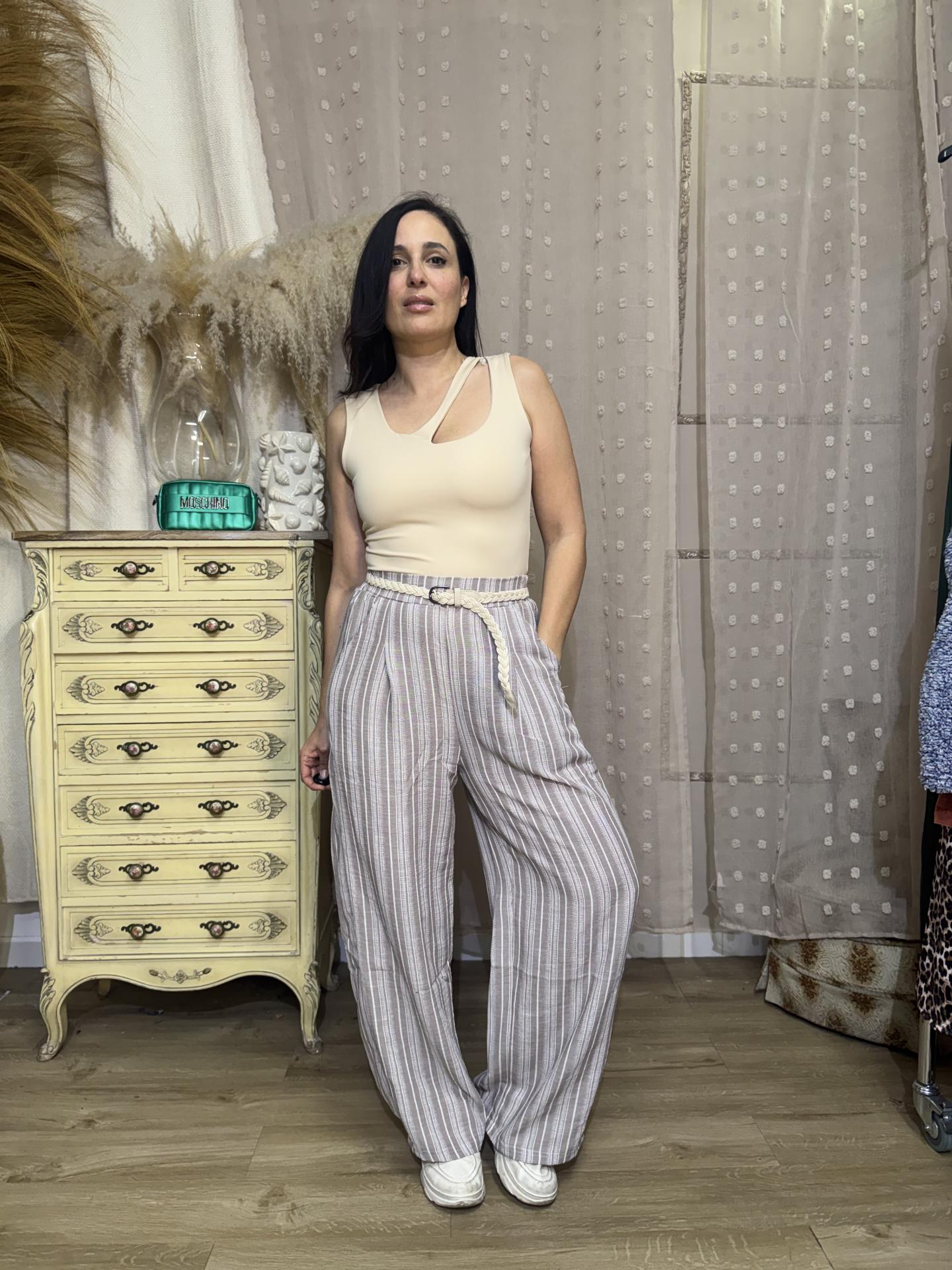 PANTALON LINO CINTURON MARRON