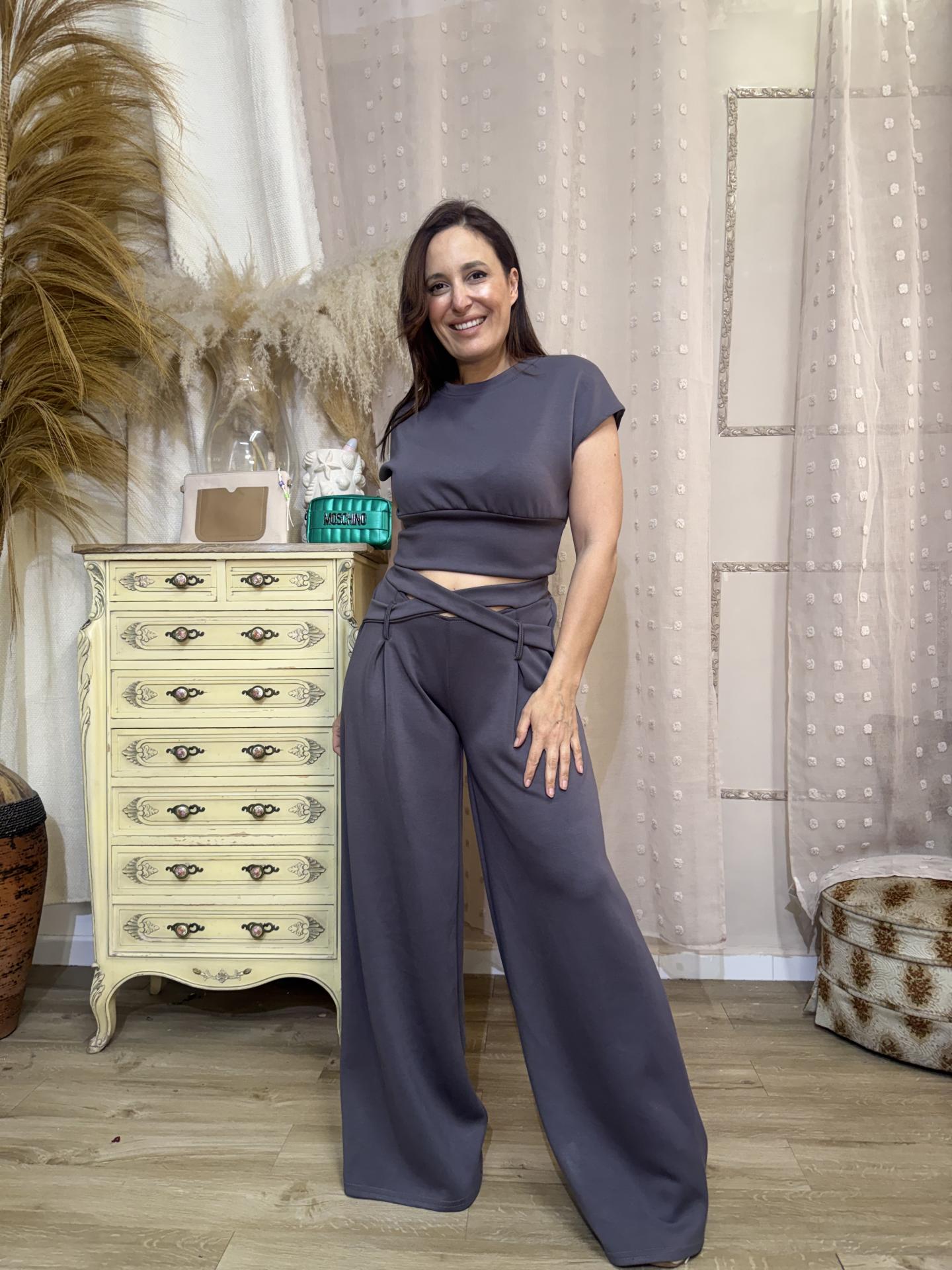CONJUNTO DEPORTIVO CRUZADO LISO GRIS